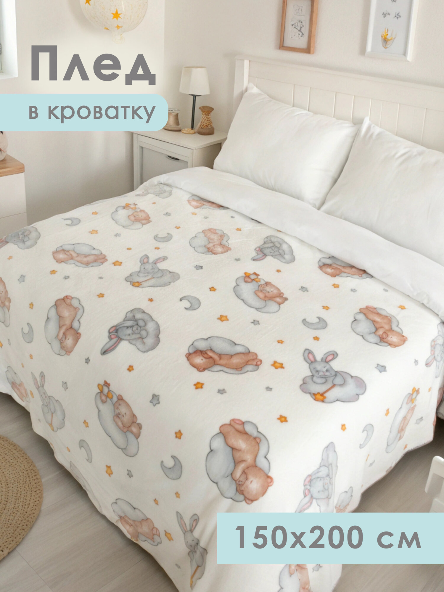 Плед 150х200 детский, Tessolo Home, пушистый на кровать, Зайки на белом 1 413 ₽