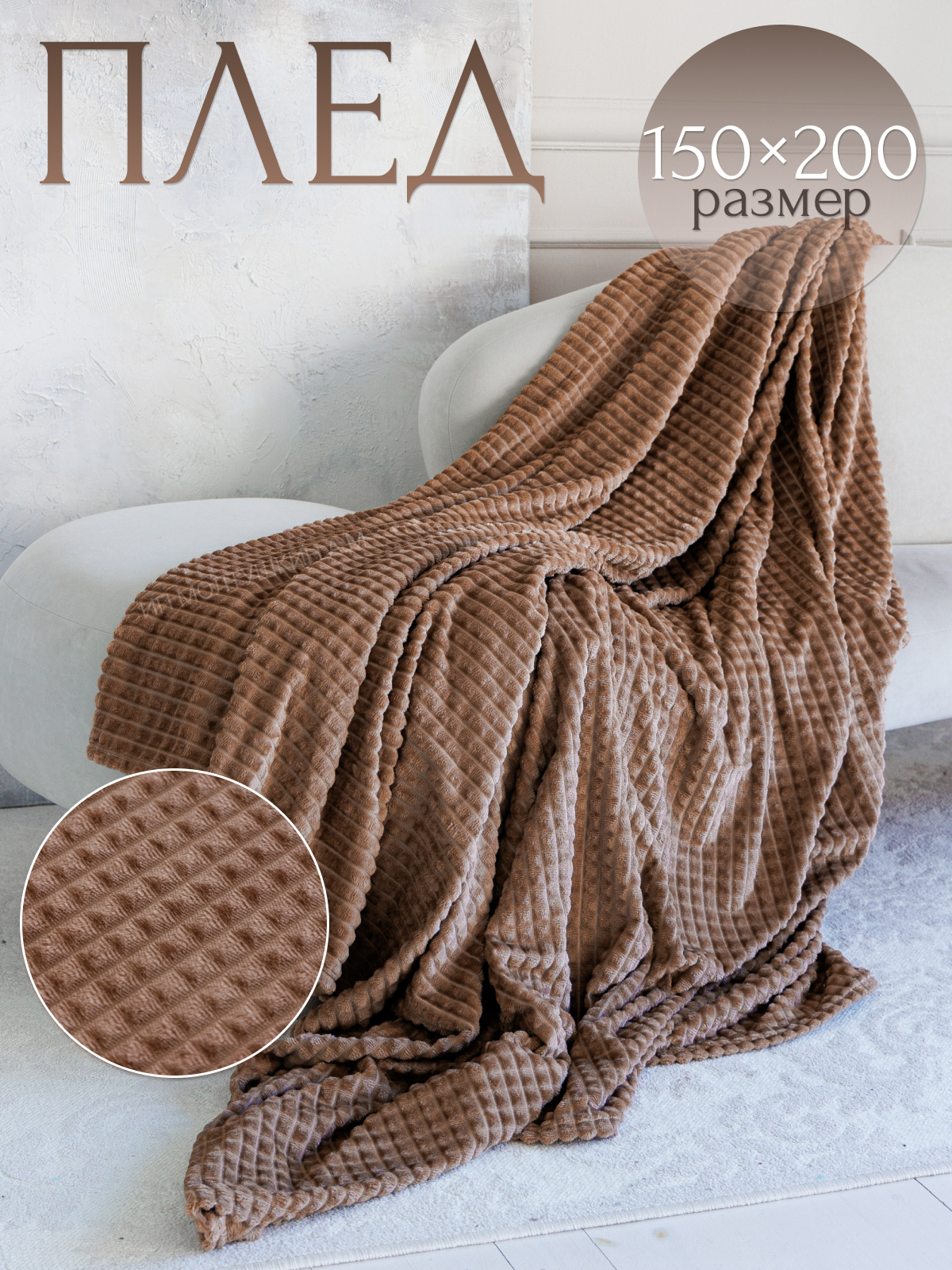 Плед Hotlo 150х200 покрывало на диван и кровать коричневый информация: