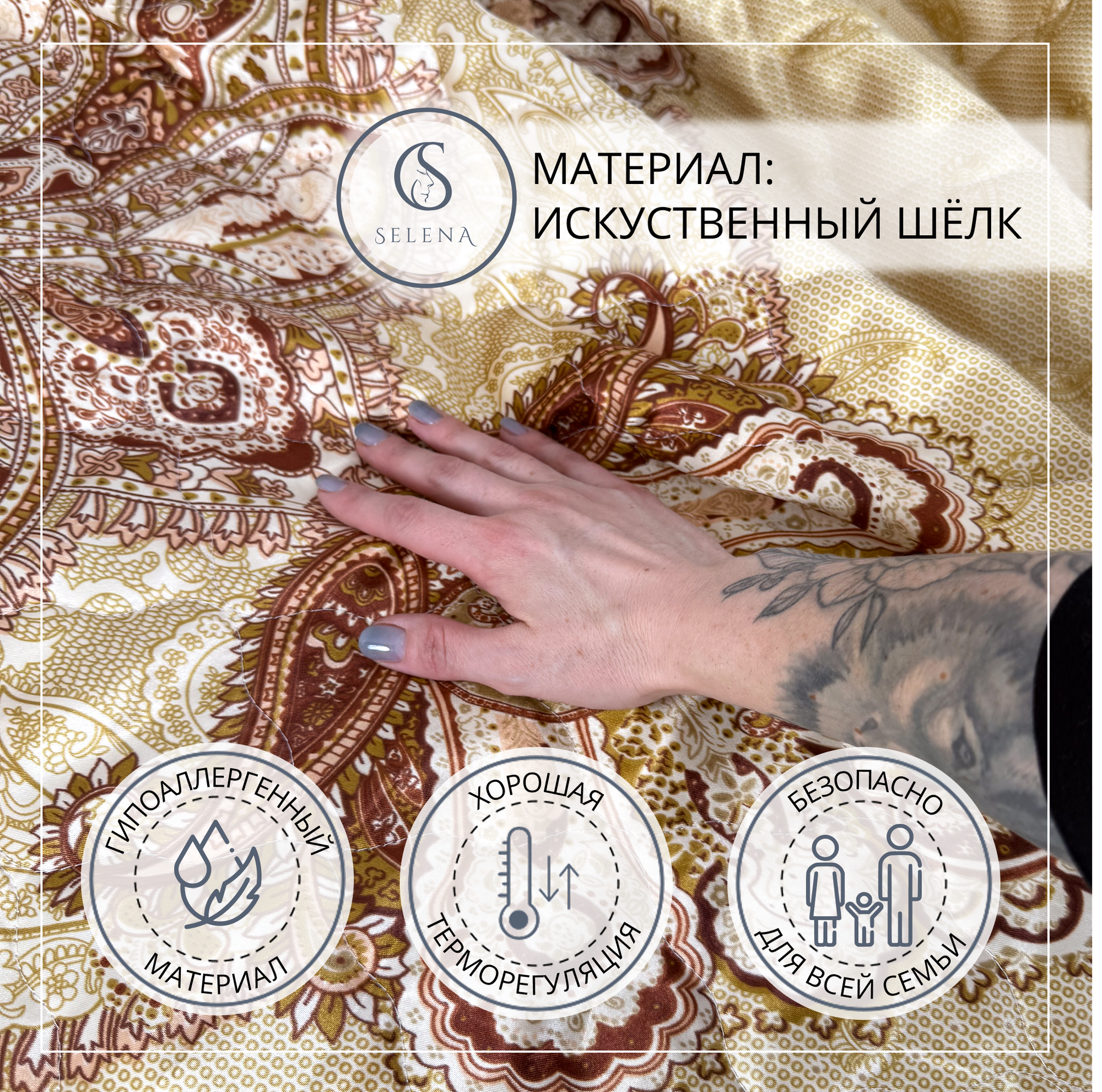 Покрывало "Тирамису" 175х200 см, SELENA, стеганое, искусственный шелк информация: