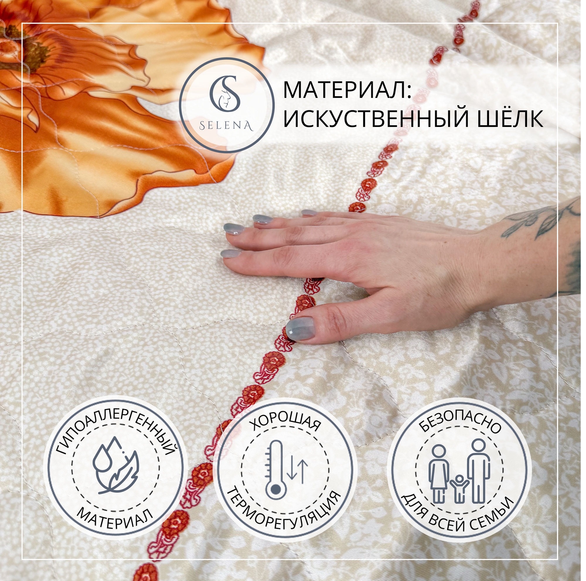 Покрывало "Любовная История" 175х200 см, SELENA, стеганое, искусственный шелк информация: