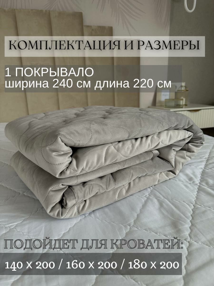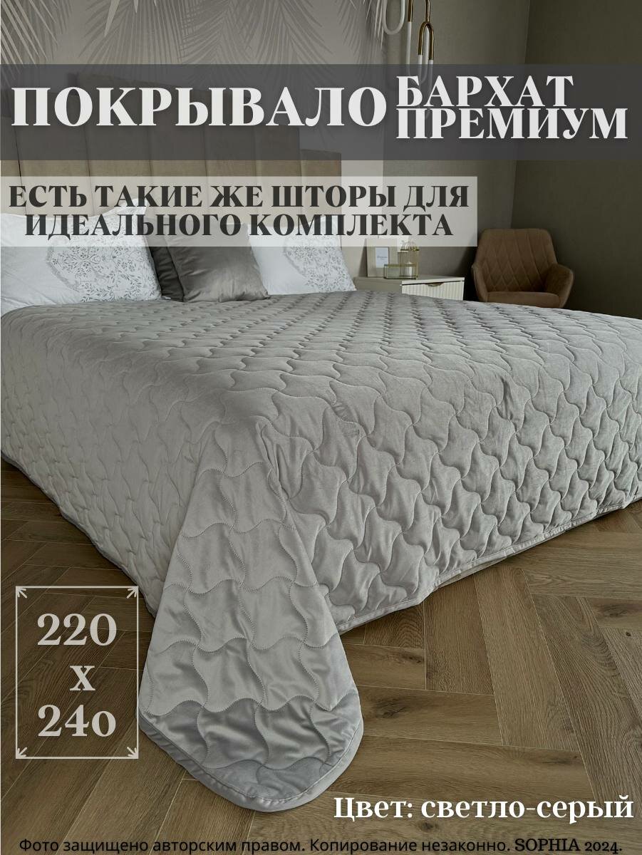 Бархатное покрывало SOPHIA, размер 240x220 см светло-серого цвета информация: