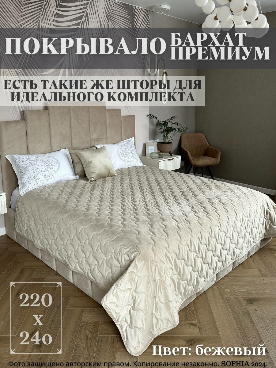 Бархатное покрывало SOPHIA, размер 240x220 см, цвет бежевый информация: