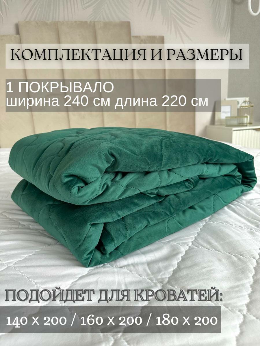 Бархатное покрывало SOPHIA, размер 240x220 см, цвет изумрудный информация: