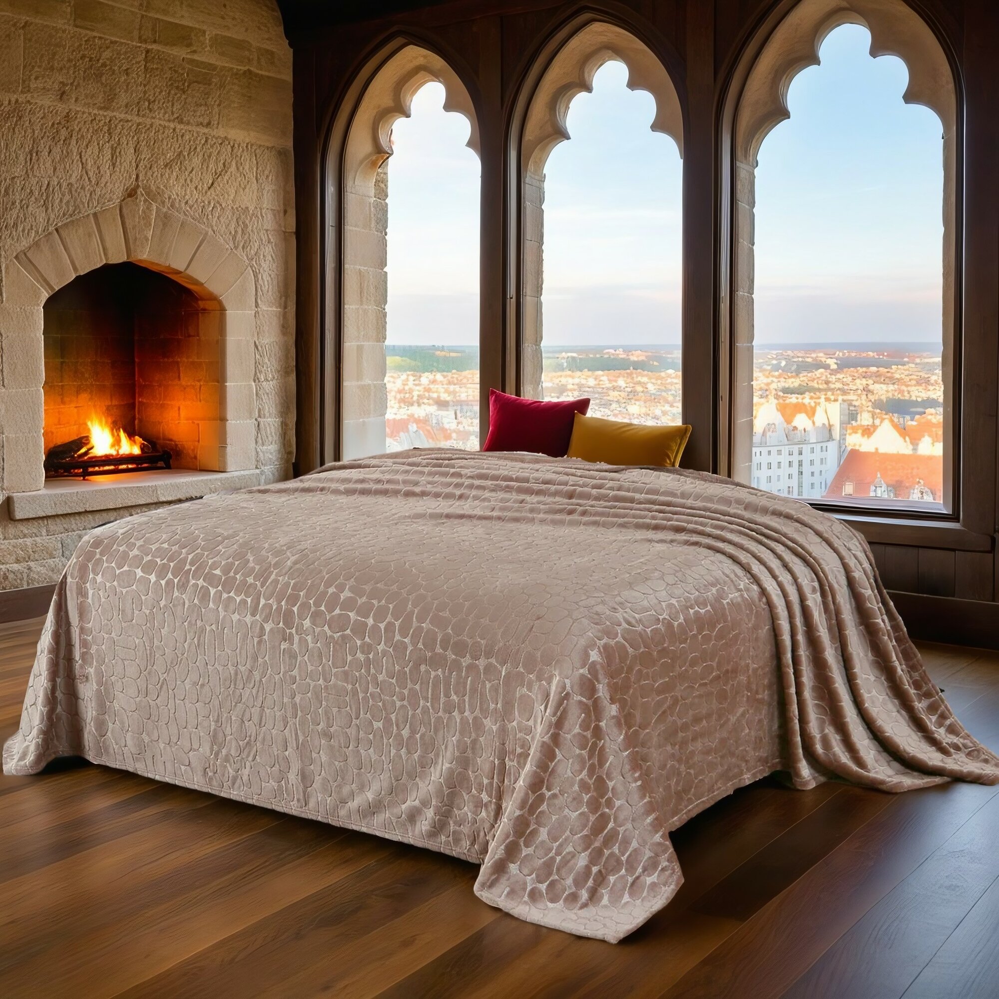 Плед 150х200 Павлина светящийся Разломы бежевый неон (светонакопитель), 1.5 спальный, полуторный