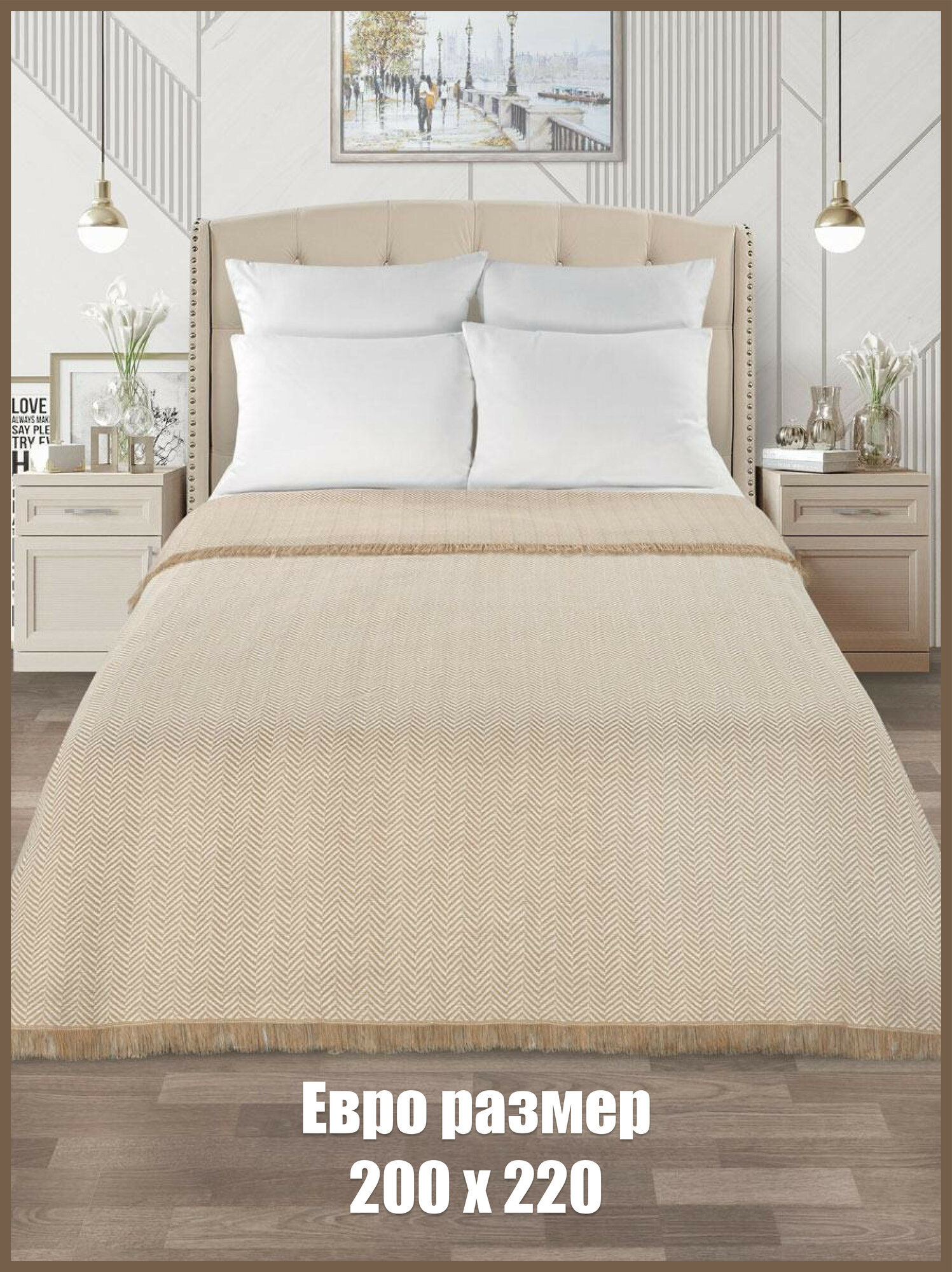 Отзывы на Плед покрывало 200х220 вязаный шерстяной бежевый на диван, кровать, кресло евро размер.