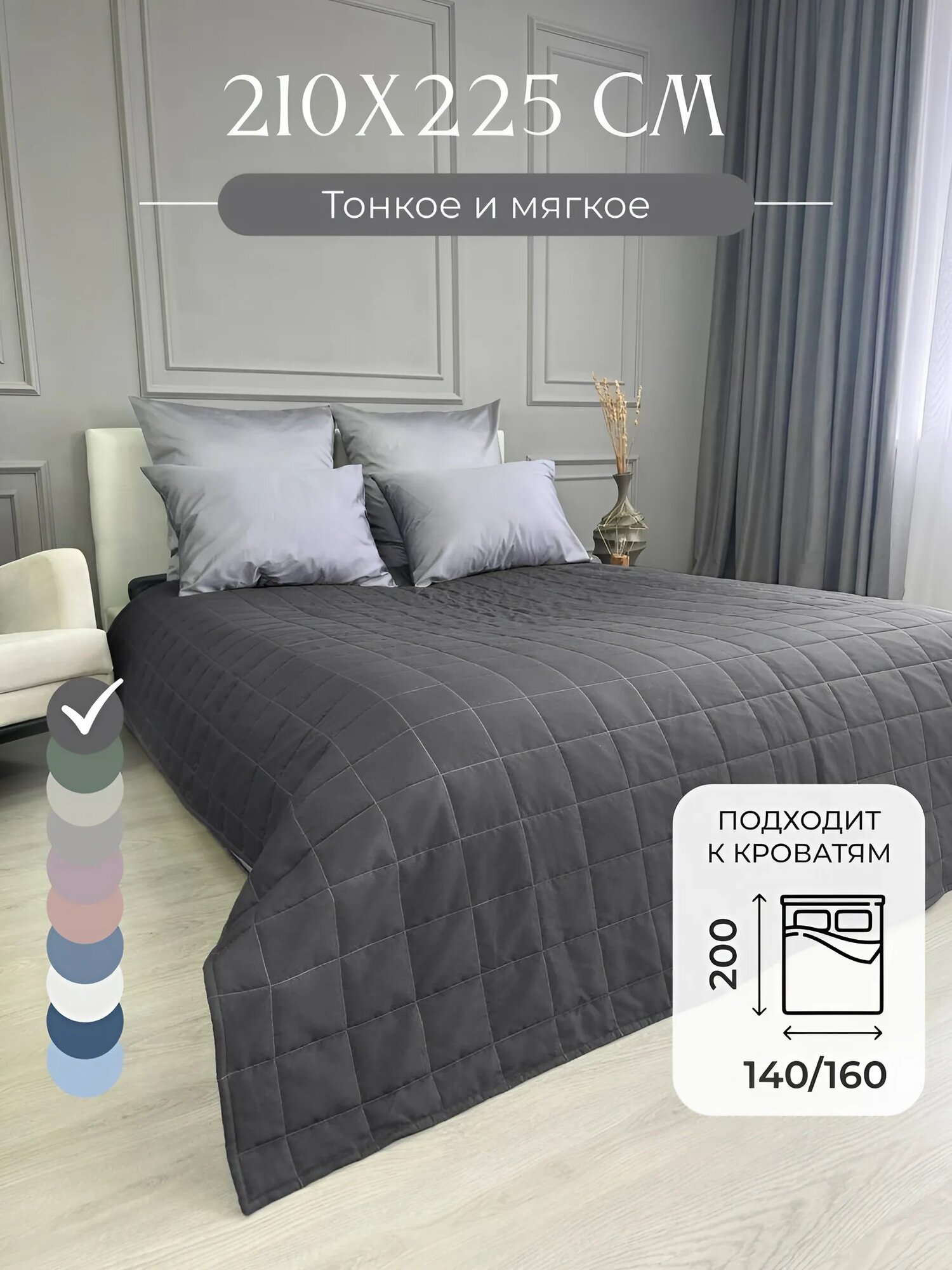 Отзывы на Покрывало на кровать 210х225 см, Ушки Подушки, графитовое, двухстороннее, стеганое