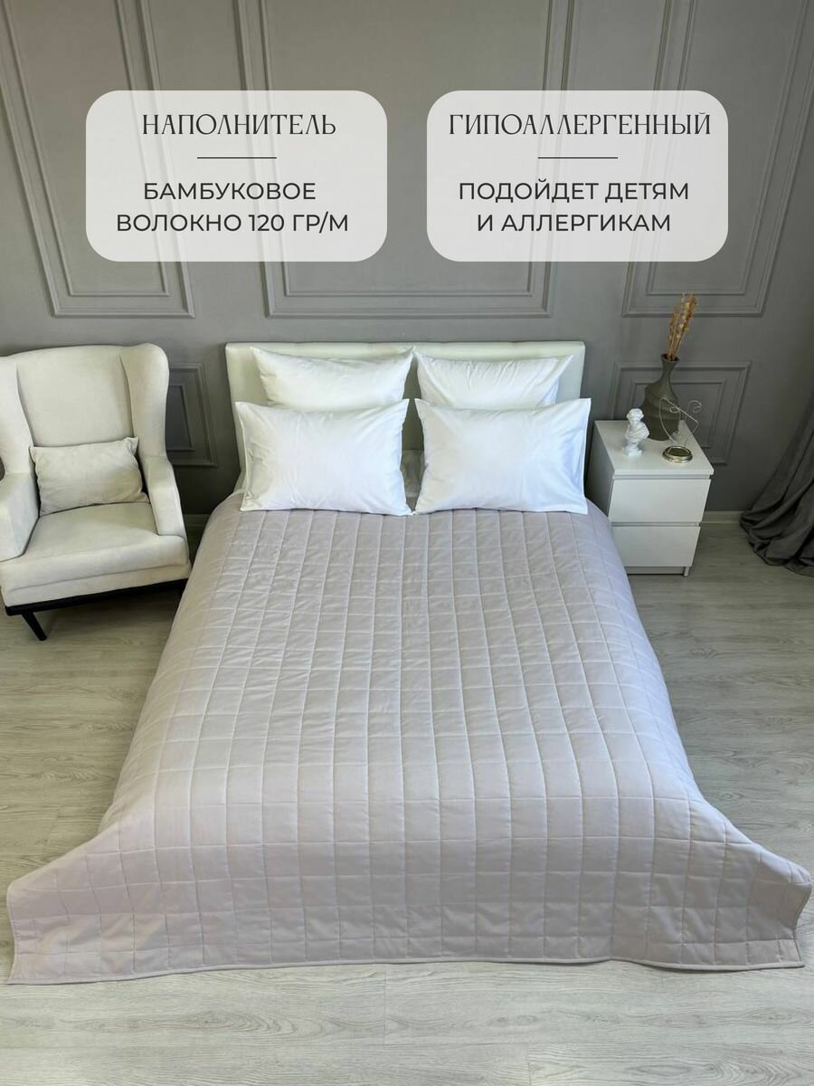 Покрывало на кровать 210х225 см, Ушки Подушки, светло-серое, двухстороннее, стеганое информация: