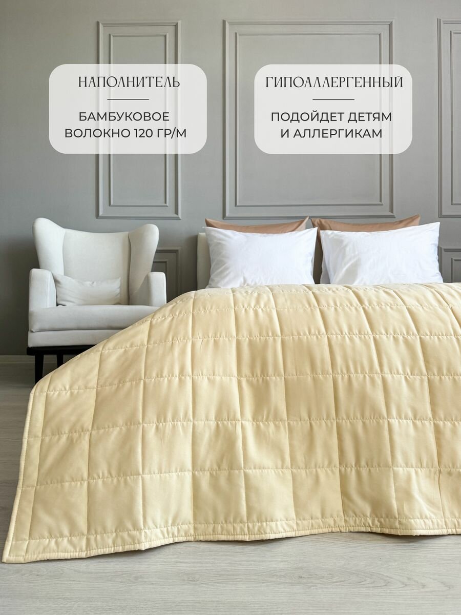 Покрывало на кровать 210х225 см, Ушки Подушки, ванильно-бежевое, двухстороннее, стеганое 3 464 ₽