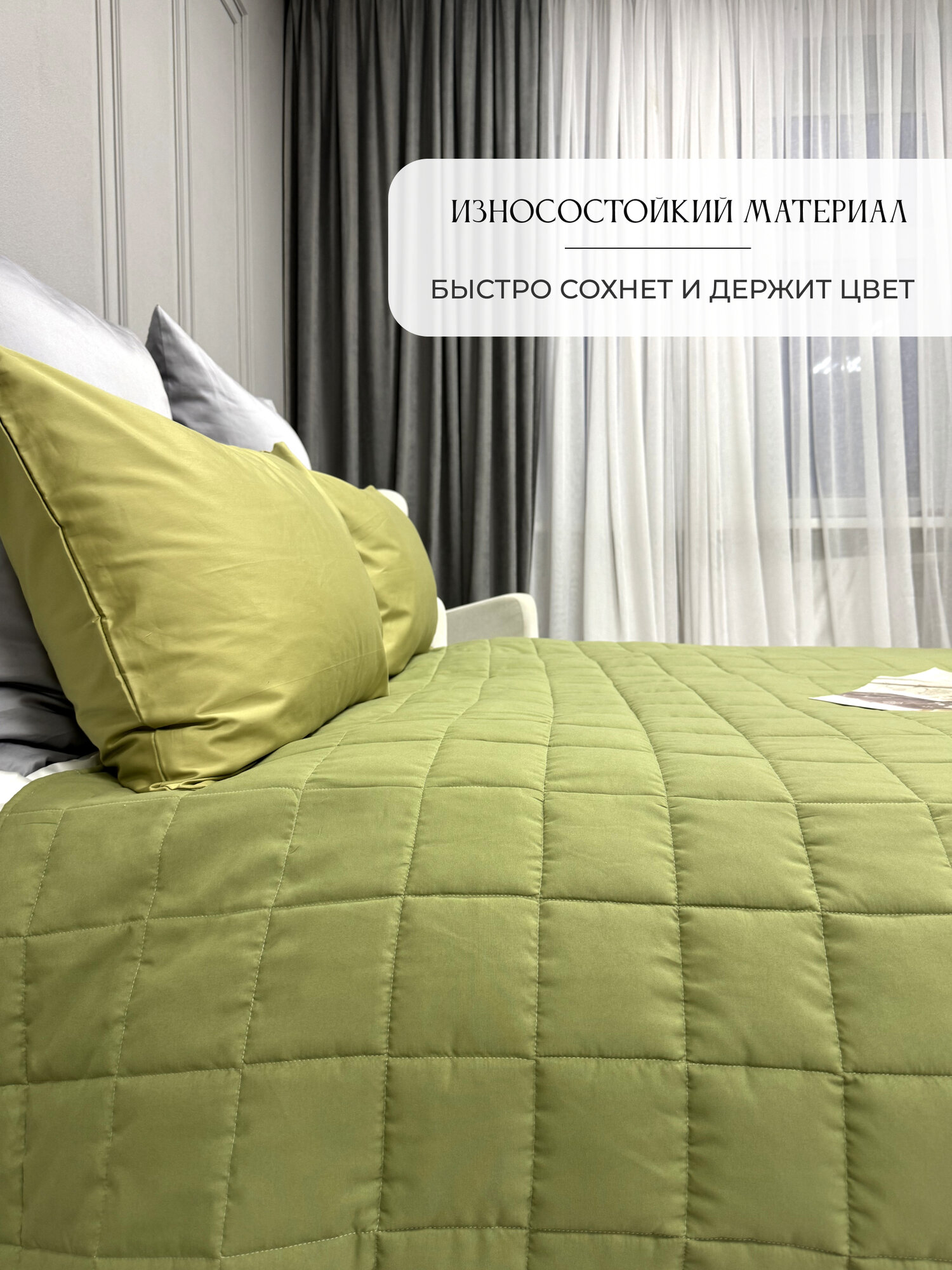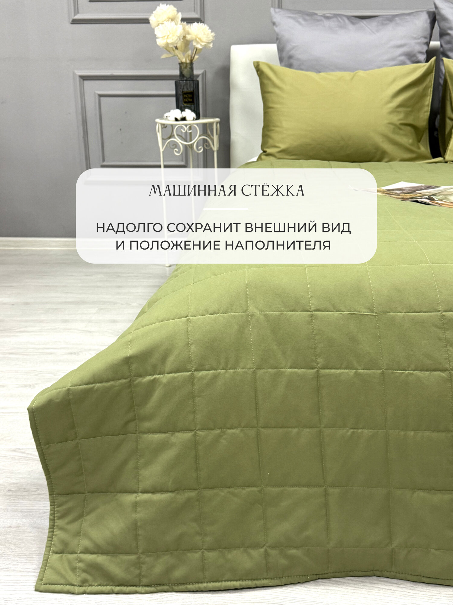 Покрывало на кровать 210х225 см, Ушки Подушки, оливковое, двухстороннее, стеганое информация: