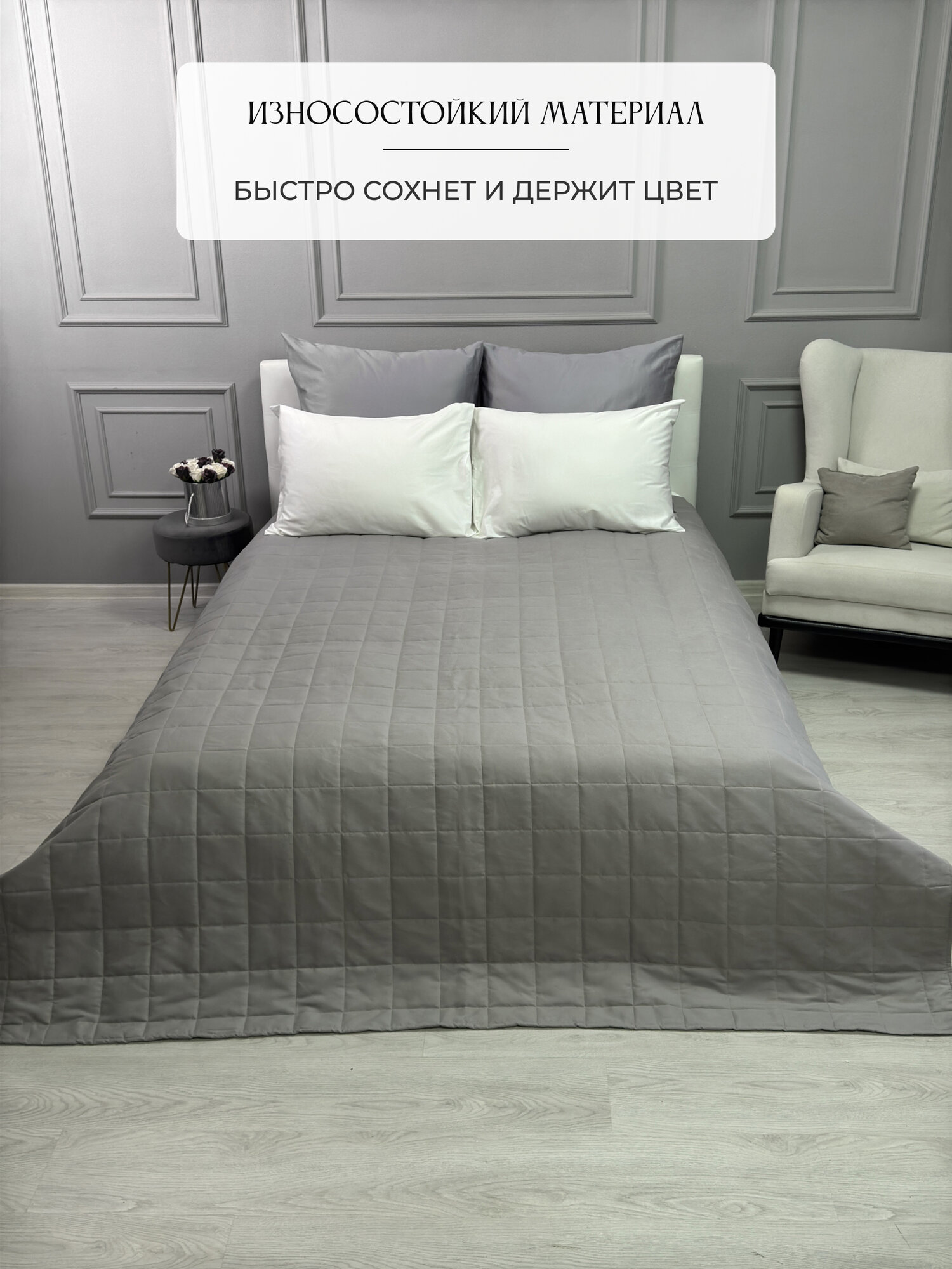Отзывы на Покрывало на кровать и диван 210х240 см стеганое, серое, Ушки Подушки