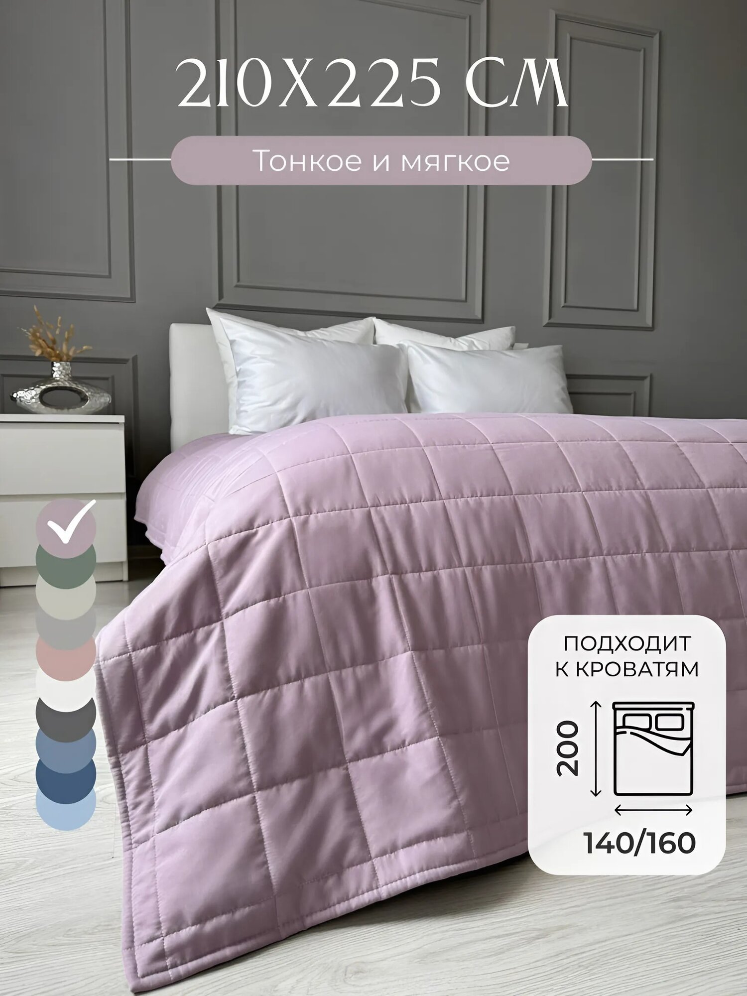Отзывы на Покрывало на кровать 210х225 см, Ушки Подушки, лавандовое, двухстороннее, стеганое