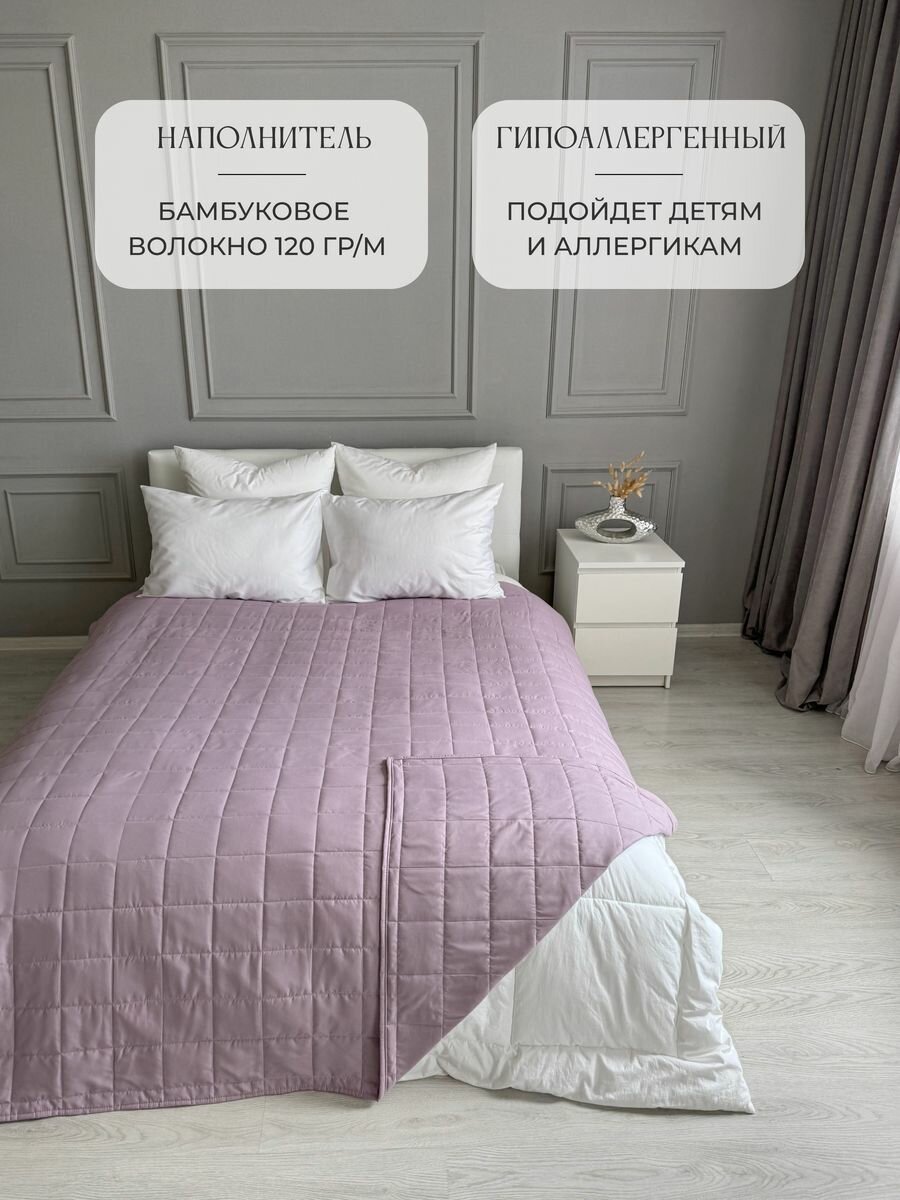 Покрывало на кровать 210х225 см, Ушки Подушки, лавандовое, двухстороннее, стеганое информация:
