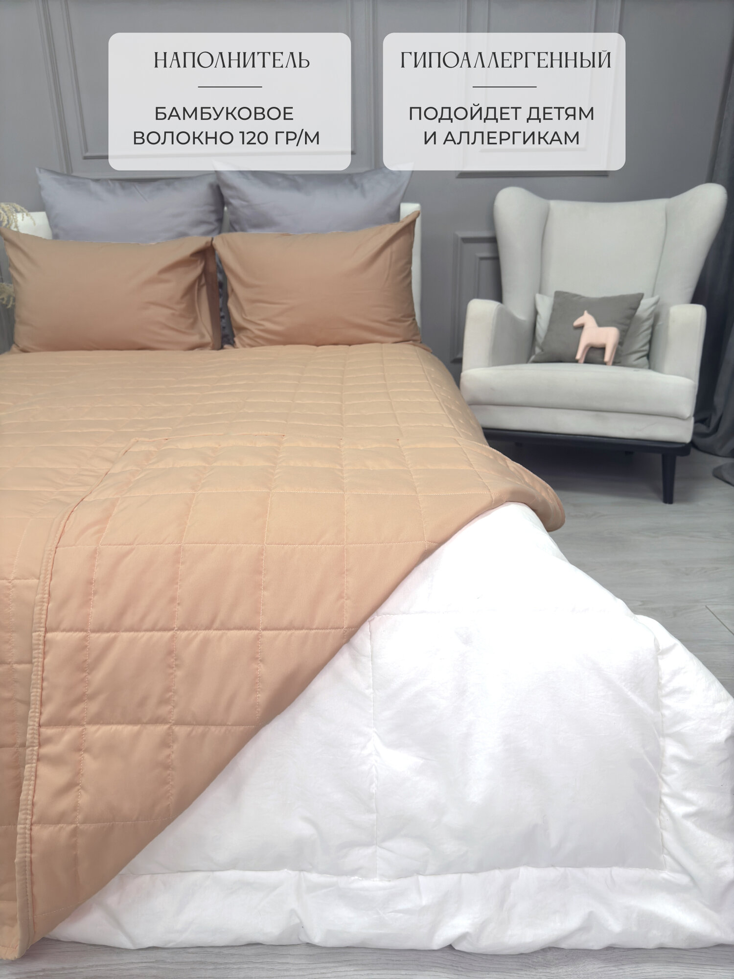 Отзывы на Покрывало на кровать 210х225 см, Ушки Подушки, персиковое, двухстороннее, стеганое