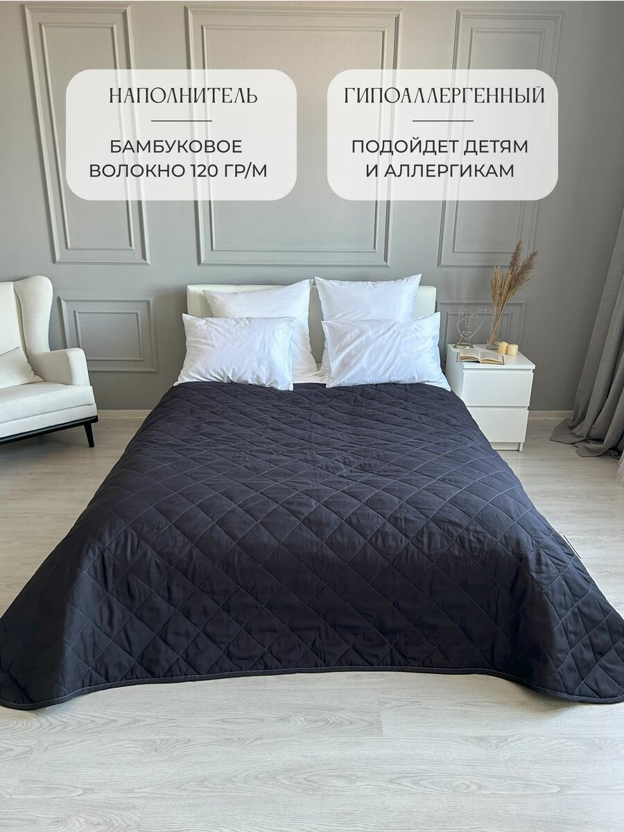 Отзывы на Покрывало на кровать и диван 210х240 см стеганое, черное, Ушки Подушки