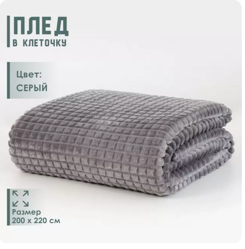 10 цен на Плед в клеточку, кубик 200*220 серый