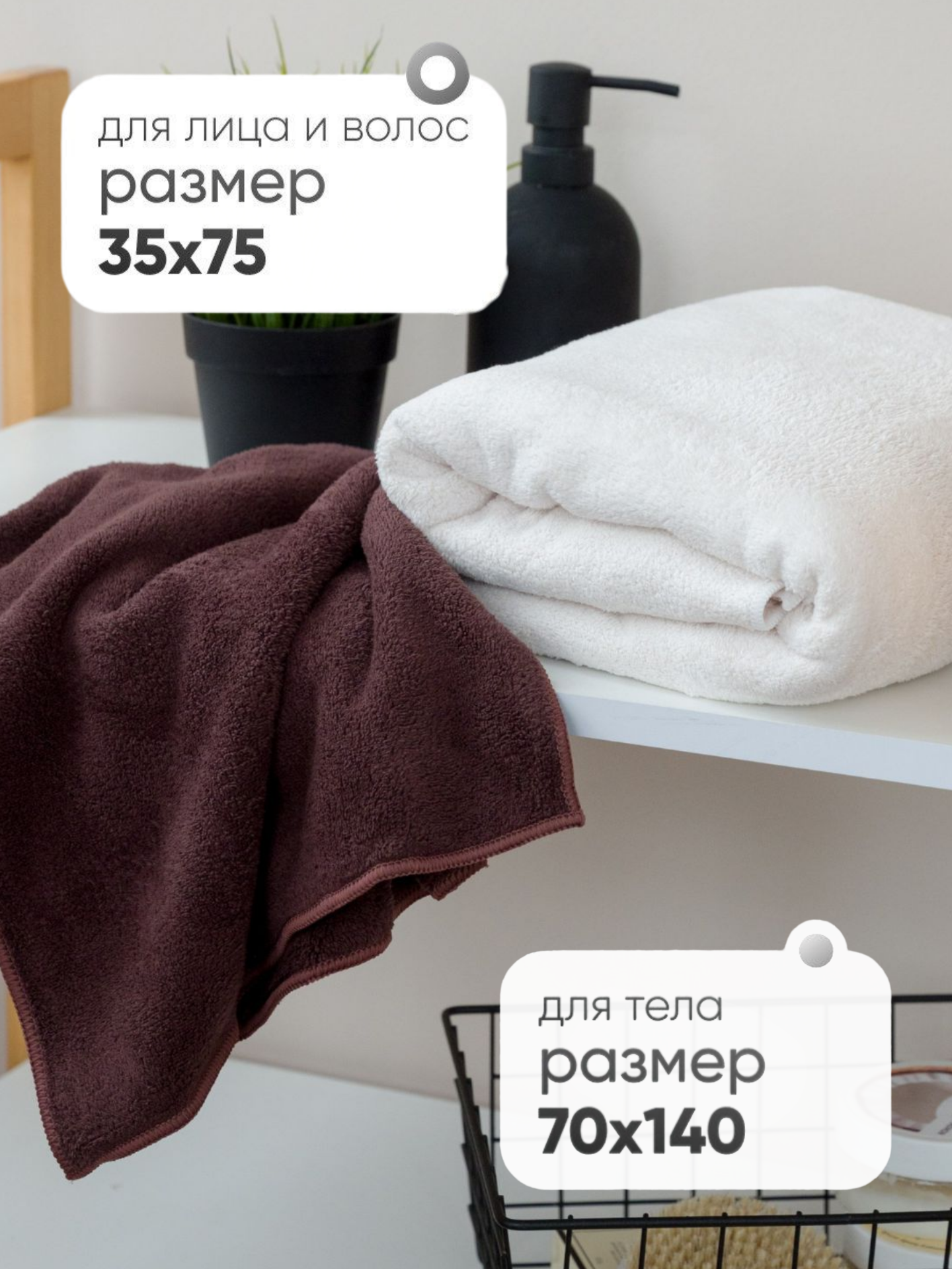 Отзывы на Полотенце банное набор 2 шт Павлина 70х140 и 35х75 см, из микрофибры, молочный-коричневый