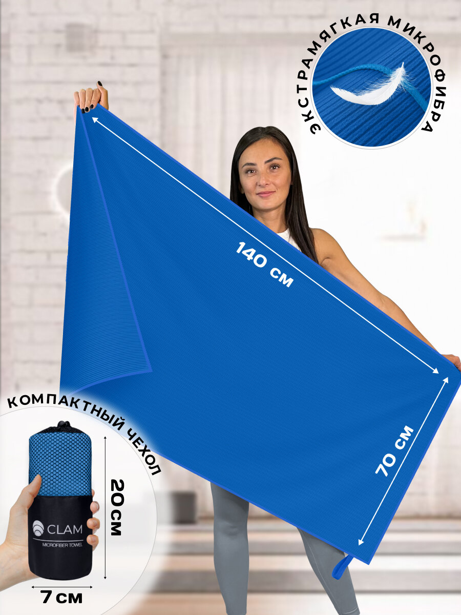 Отзывы на Спортивное полотенце из микрофибры быстросохнущее для зала и для бассейна 70х140 см, темно-синее