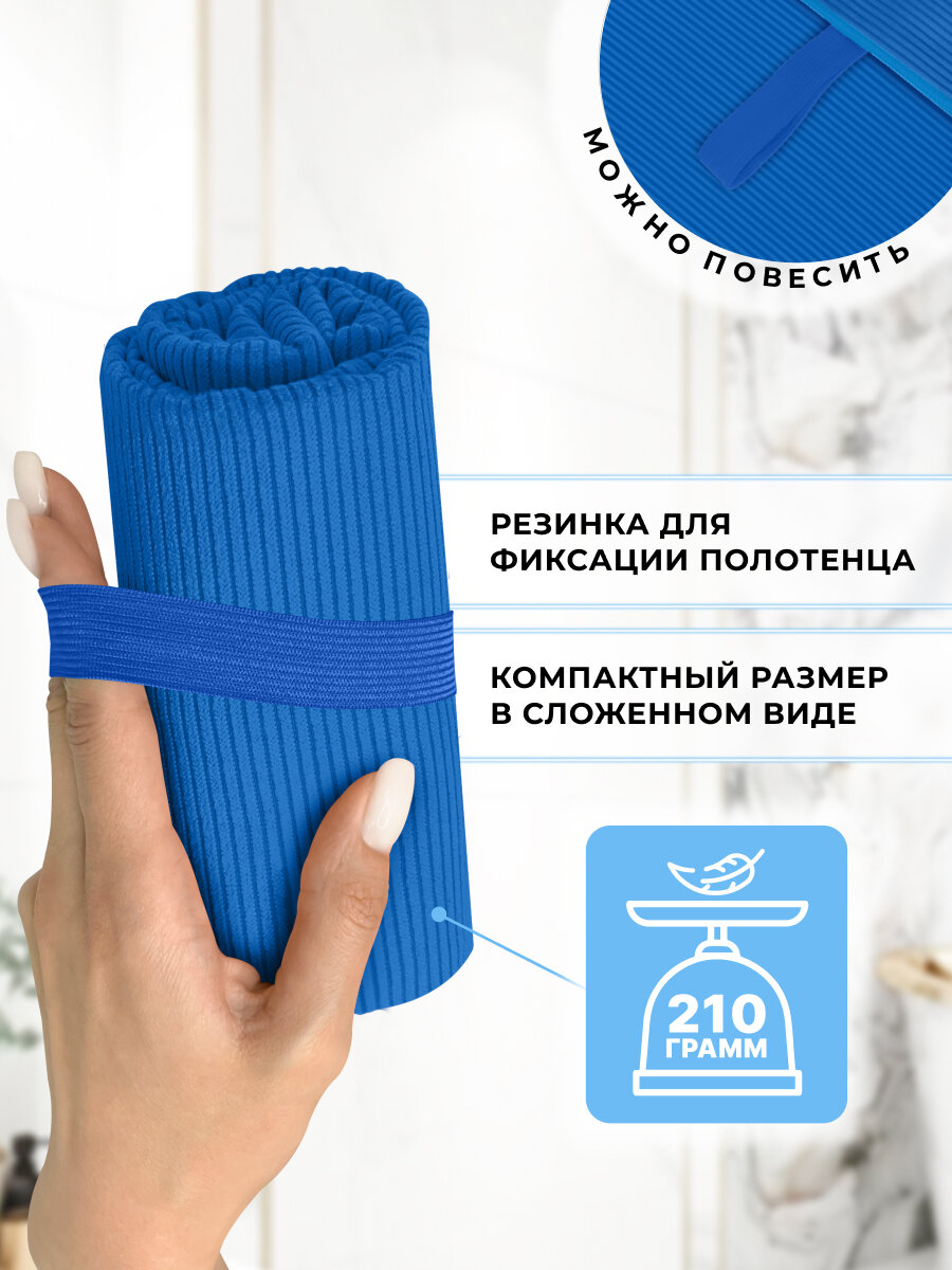 Спортивное полотенце из микрофибры быстросохнущее для зала и для бассейна 70х140 см, синее 749 ₽