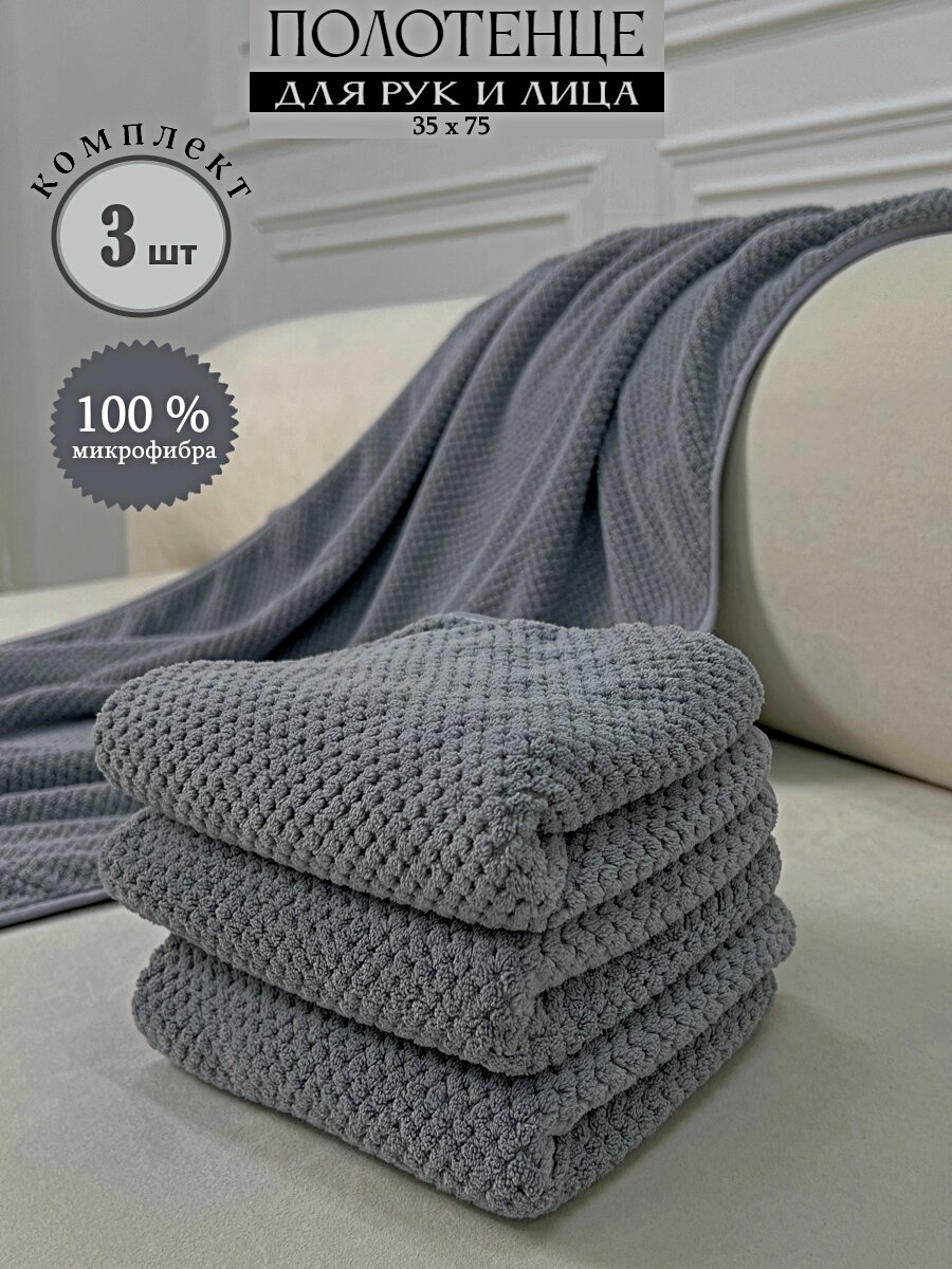 Отзывы на Комплект из 3-х полотенец из микрофибры, размер 35х75, цвет серый