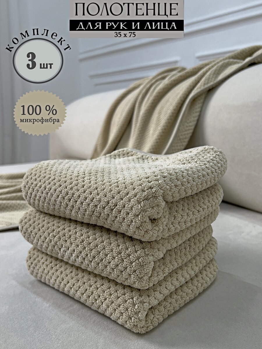 Отзывы на Комплект из 3-х полотенец из микрофибры, размер 35х75, цвет бежевый