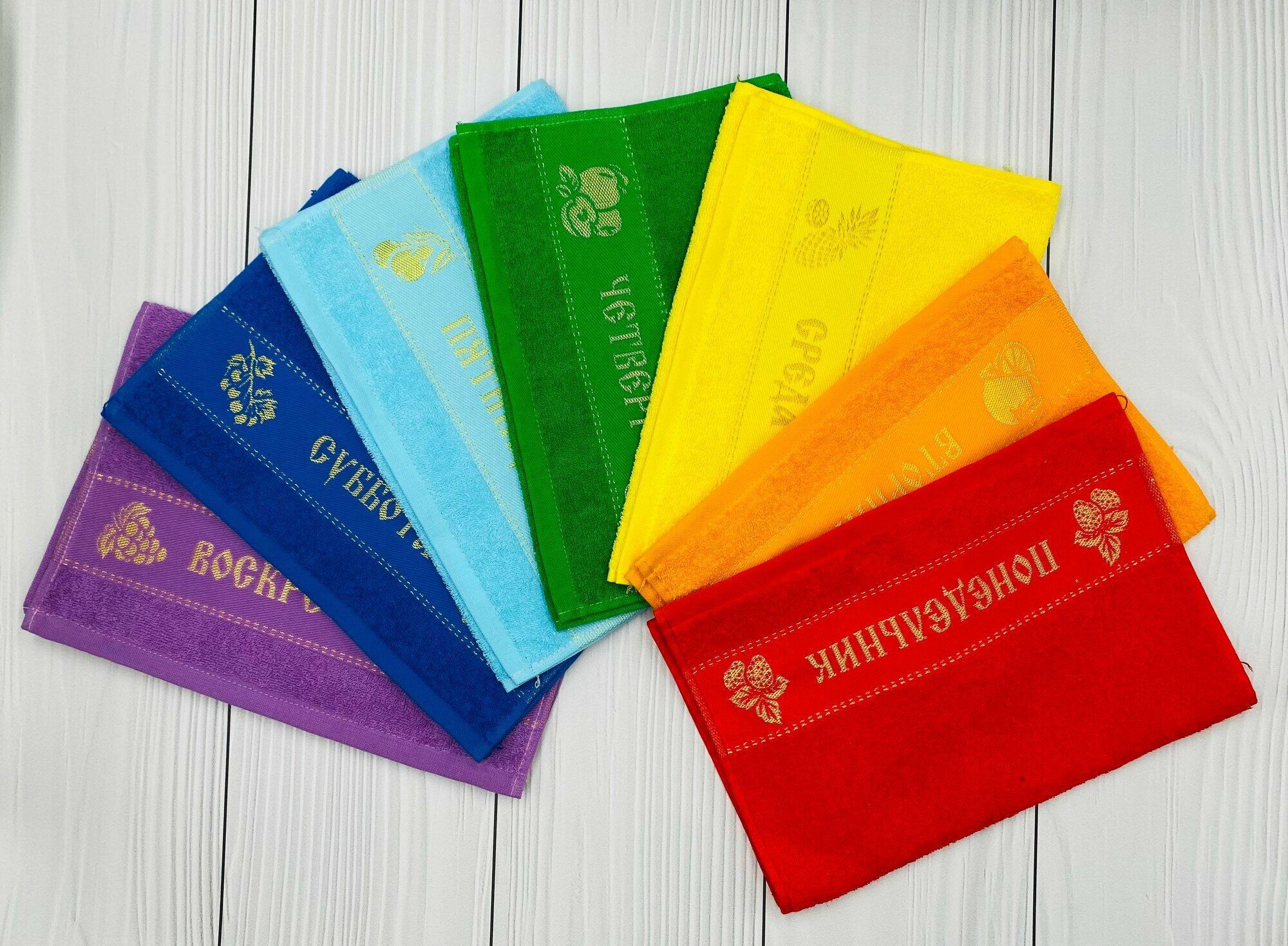 10 цен на Набор кухонных махровых полотенец - 7 шт. 30*60 см "Неделька", Полотенце для рук и лица из 100% хлопка.