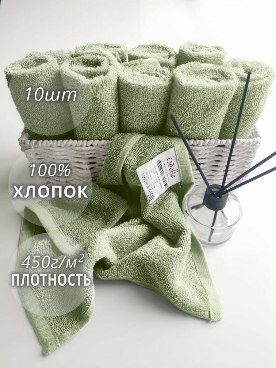 Махровые кухонные полотенца Odella, 30×30 см, оливковые, хлопок 100%, набор 10шт 782 ₽