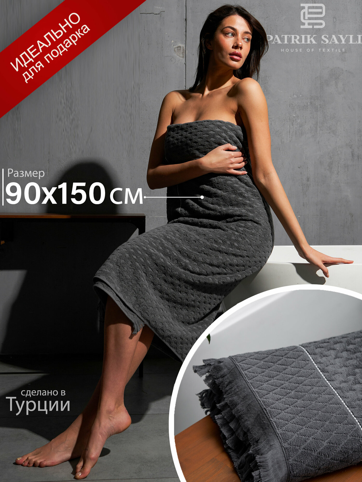 Полотенце банное махровое 90х150 PATRIK SAYLI (100%Хлопок); (графит); (500 гр.) FORTUNE информация: