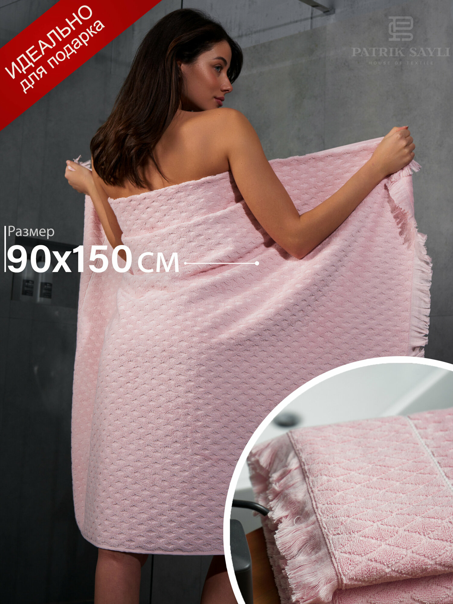 Полотенце банное махровое 90х150 PATRIK SAYLI (100%Хлопок); (розовый); (500 гр.) FORTUNE информация: