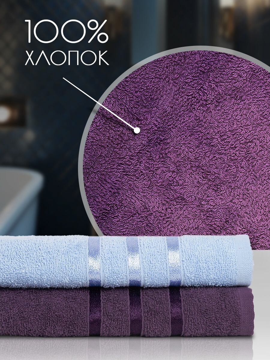 Полотенце махровое банное MONTSSERAT для ванной и бани, набор из 2 штук, 2 шт по 50х80 см, впитывает влагу, светло-голубой и фиолетовый информация: