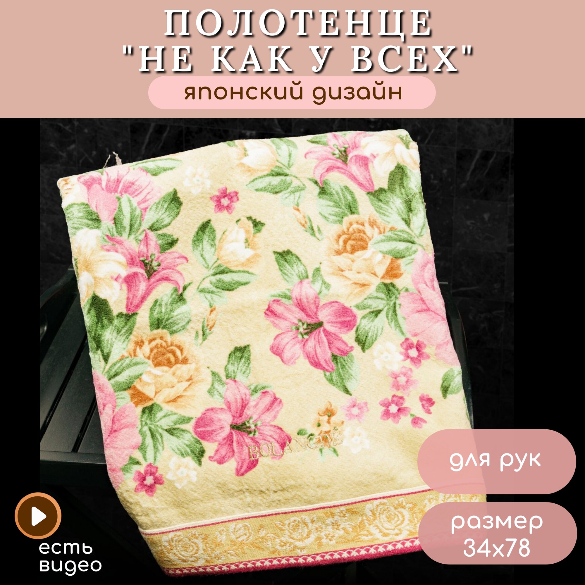 Отзывы на Полотенце для рук и лица 1 шт, полотенце для ванной махровое, велюровое BOLANGDE, 100% хлопок, рисунок цветы, Япония Пионы34х78, бежевый