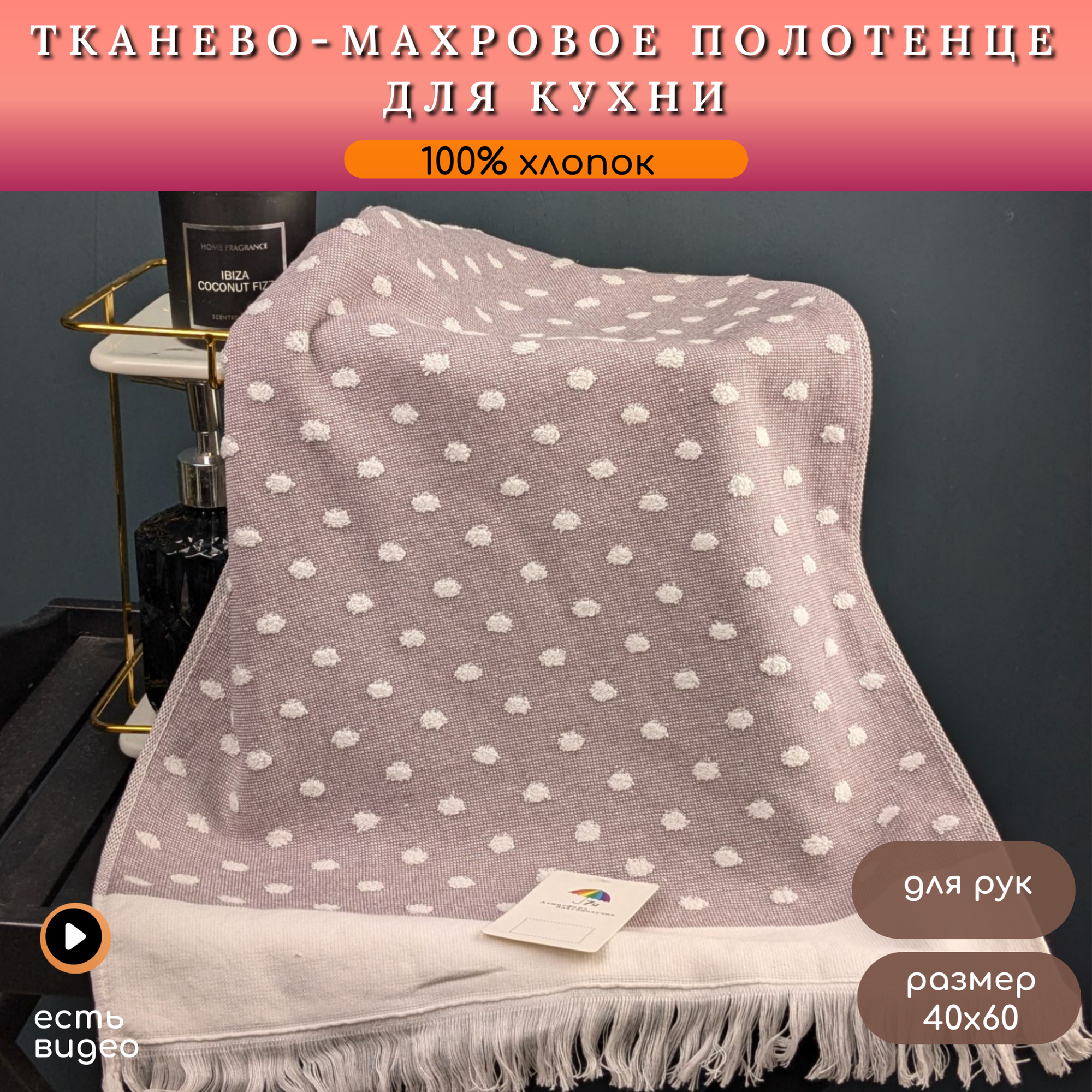 Отзывы на Полотенце для кухни и рук 40х60 ткань/махра 100% хлопок 7Я Горохи 2211328-красно-коричневый