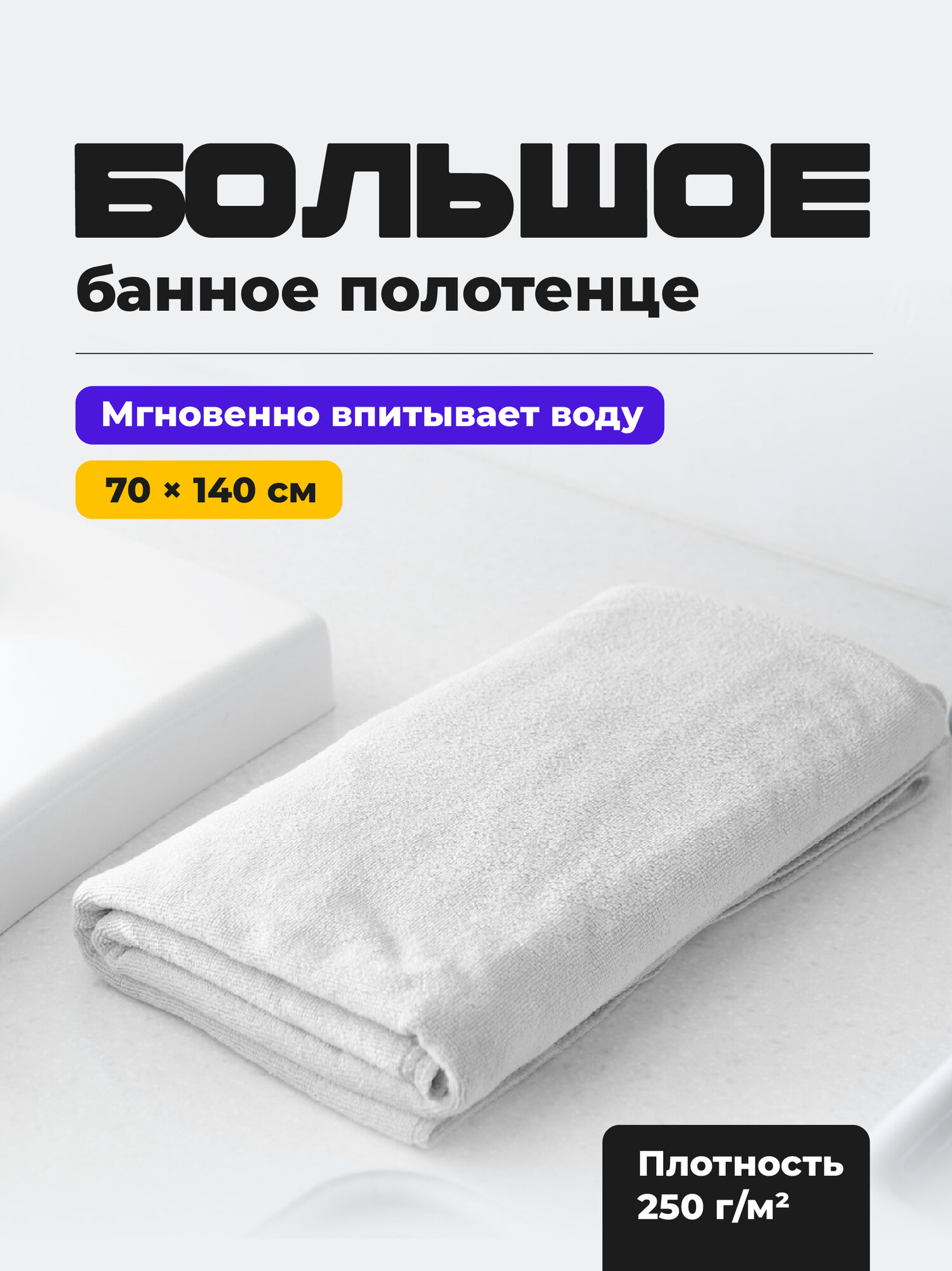 Birdhouse, Банное полотенце из микрофибры для рук и тела/ Полотенце для пляжа, бассейна, спортзала/ серое, 70х140 см 651 ₽