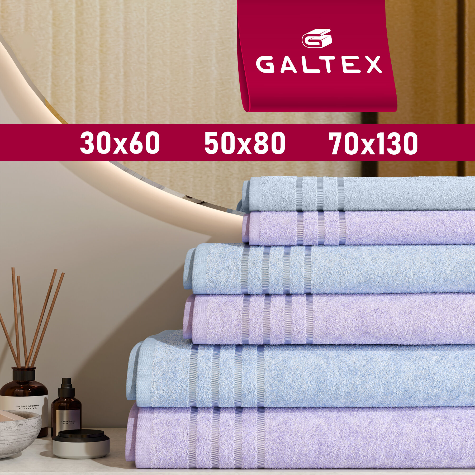 Полотенце махровое 6 шт 30х60 2шт; 50х80 2 шт; 70х130 2 шт Galtex Голубой/Сиреневый информация: