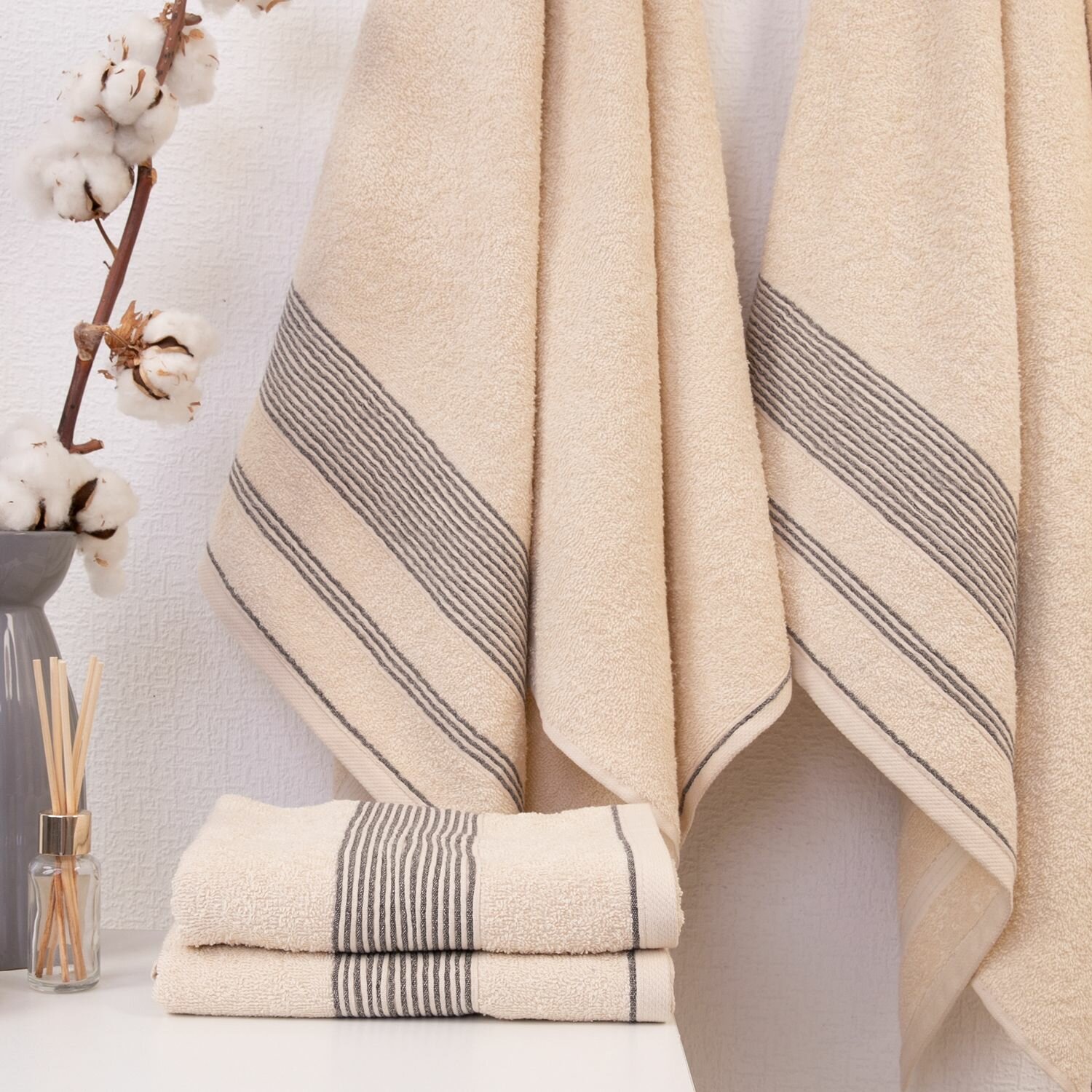 Отзывы на Полотенеце банное махровое набор из 4 шт, 50х90см-2 шт; 70х140 см-2 шт, светло-бежевый "Модерн"