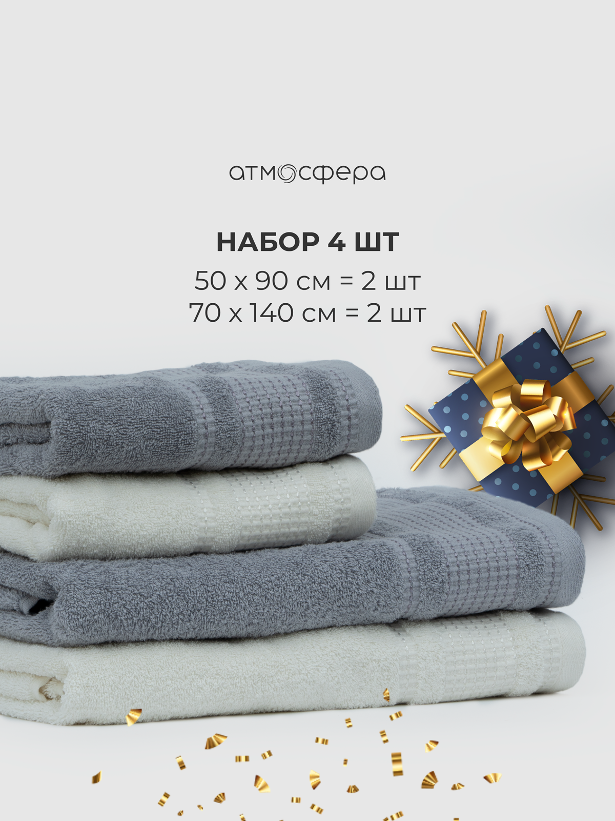 10 цен на Набор махровых полотенец для лица и тела - 4 шт. молочные и светло-серые, хлопок 100%