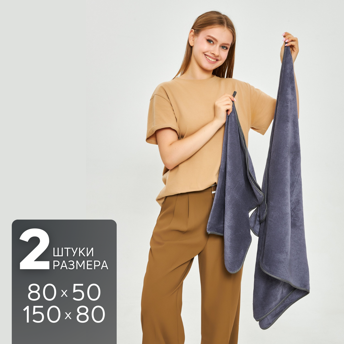 10 цен на Набор банных полотенец MAOMIKO, 2 штуки, микрофибра, 150x80 см/80x50 см, серый