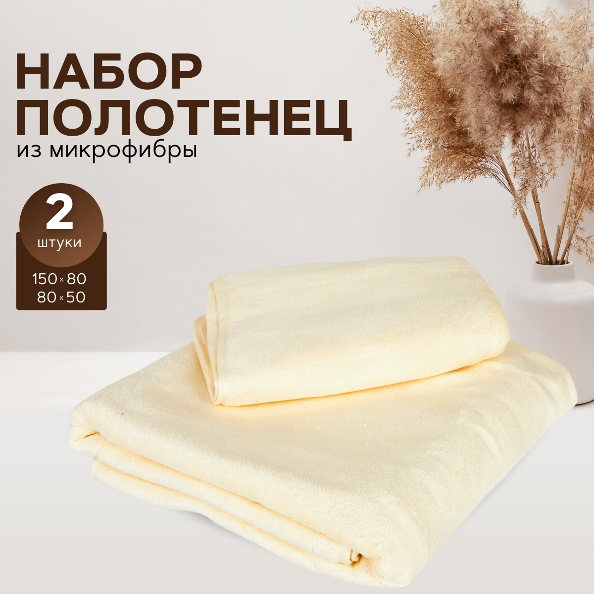 Набор банных полотенец MAOMIKO, 2 штуки, микрофибра, 150x80 см/80x50 см, коричневый 925 ₽