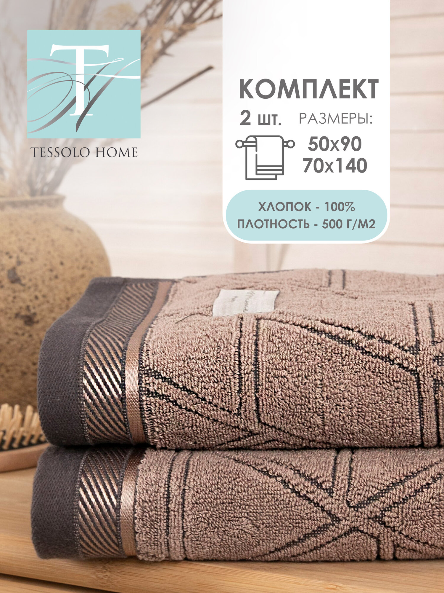 Полотенце банное махровое набор 2 шт. (50х90 - 1шт; 70х130 - 1шт.) 500г/м² Хлопок TESSOLO HOME информация: