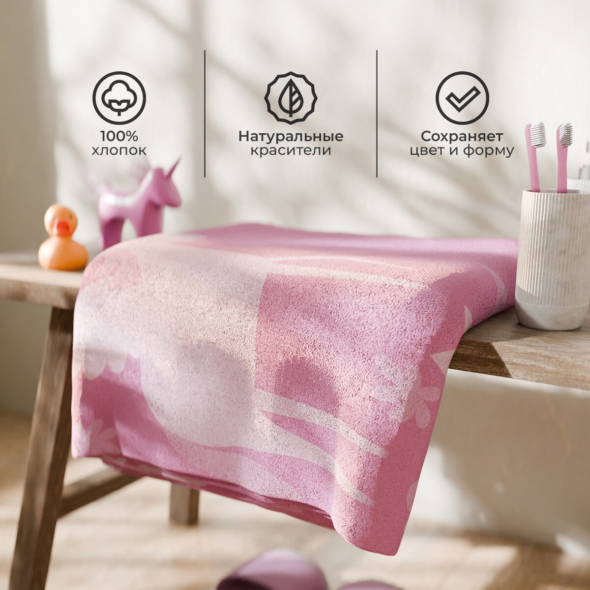 Полотенце махровое 70х130 Этель "Единорог", цвет розовый, 100% хлопок 904 ₽