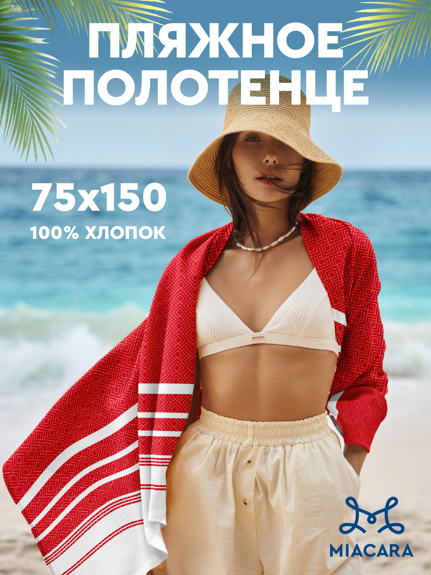 10 цен на Полотенце пляжное вафельное 75х150 "Mia Cara" рис 30730-1 Peshtemal красный