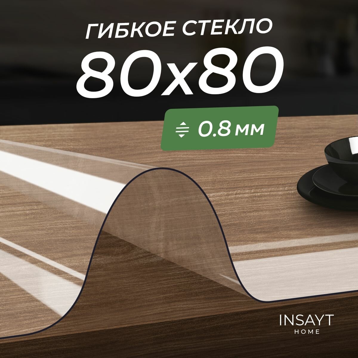10 цен на Скатерть гибкое жидкое стекло на стол прозрачное 80х80 см квадратное, толщина 0,8 мм.