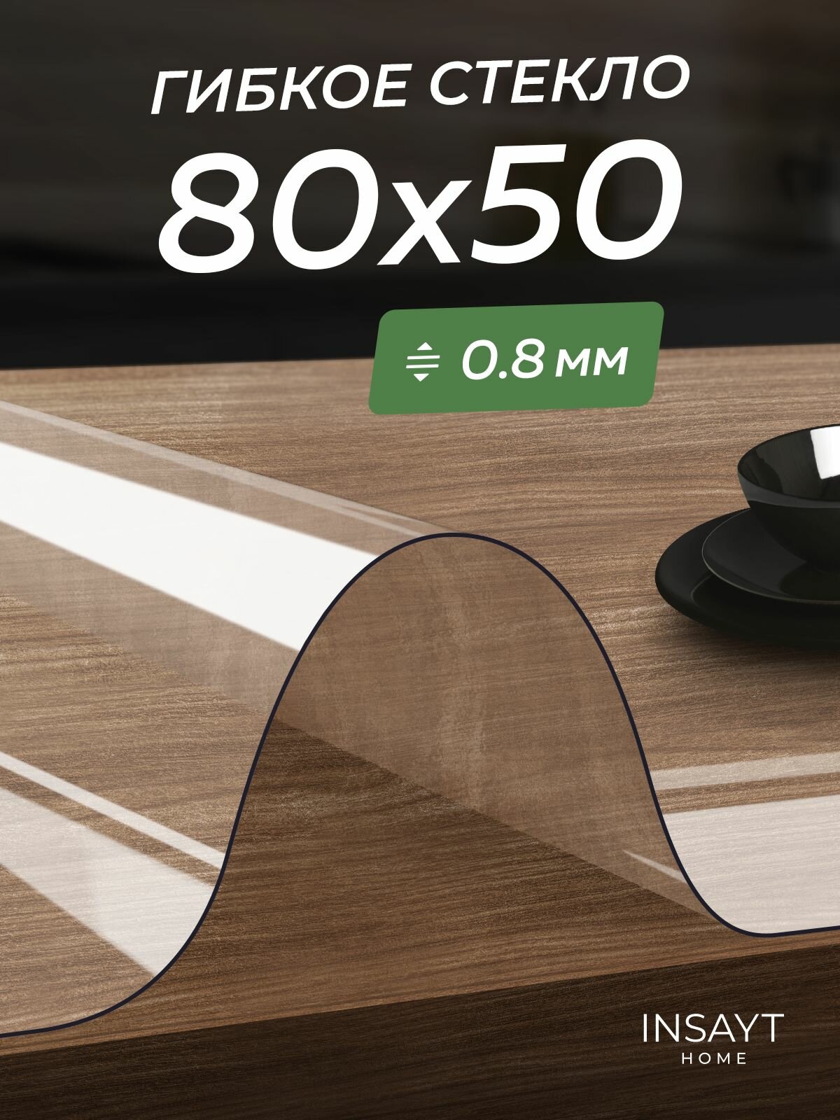 Скатерть гибкое жидкое стекло на стол прозрачное 80х50 см, 50х80 см, толщина 0.8 мм информация: