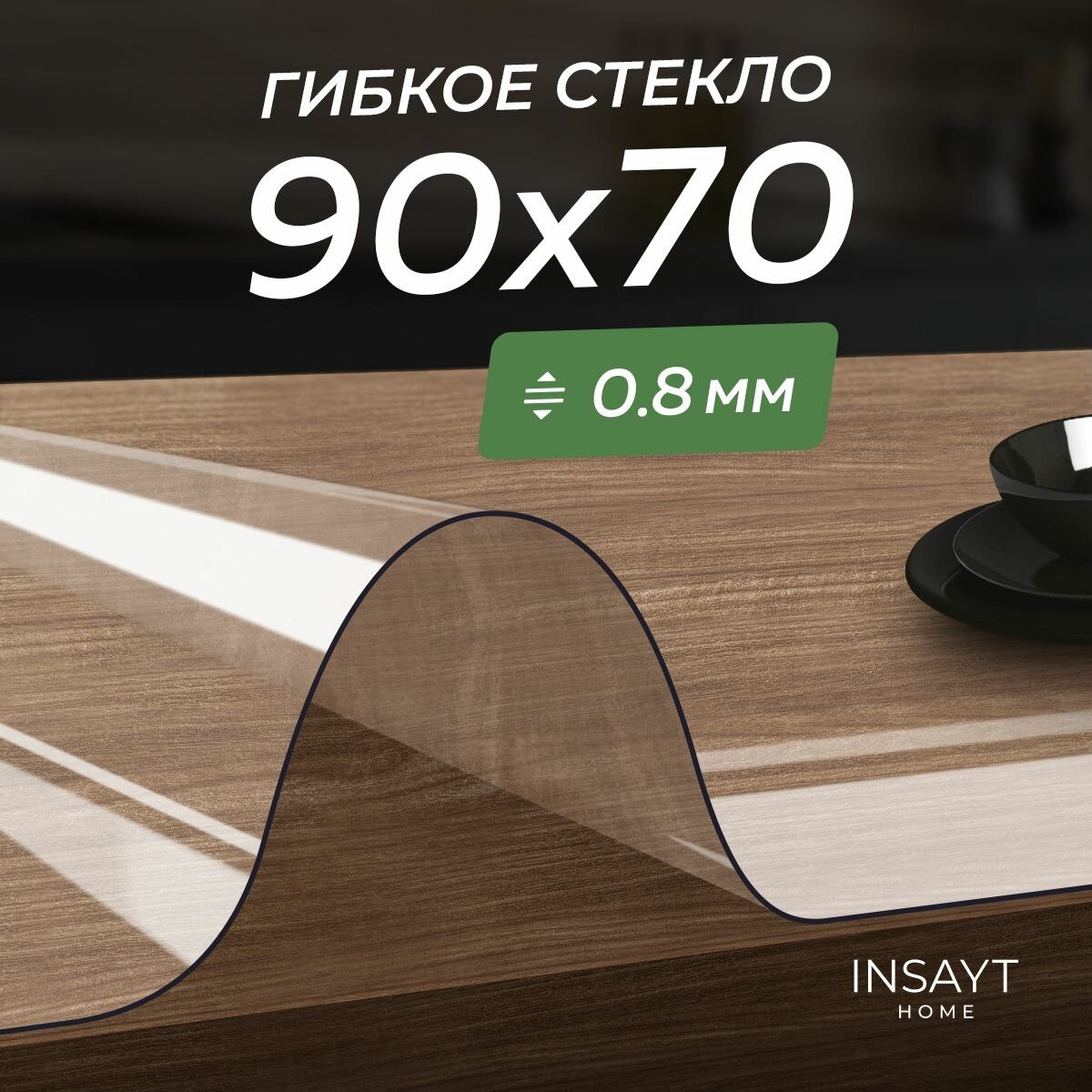 Скатерть гибкое жидкое стекло на стол прозрачное 90х70 см, 70х90 см, толщина 0,8 мм. информация: