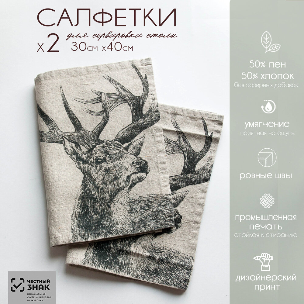 10 цен на Набор сервировочных салфеток "Олень", 2 штуки, 30x40 см, умягченный лен
