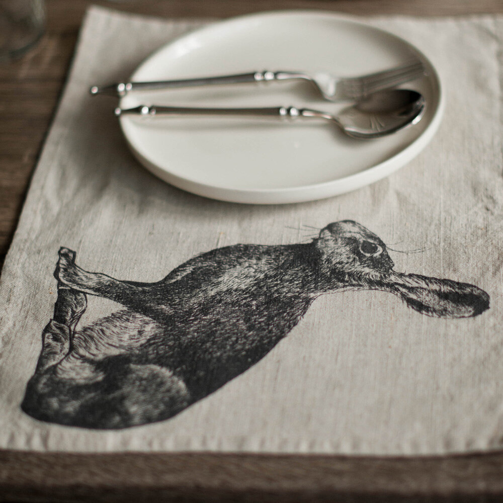 10 цен на Набор сервировочных салфеток с принтом "Заяц", 2 штуки, 30x40 см, умягченный лен