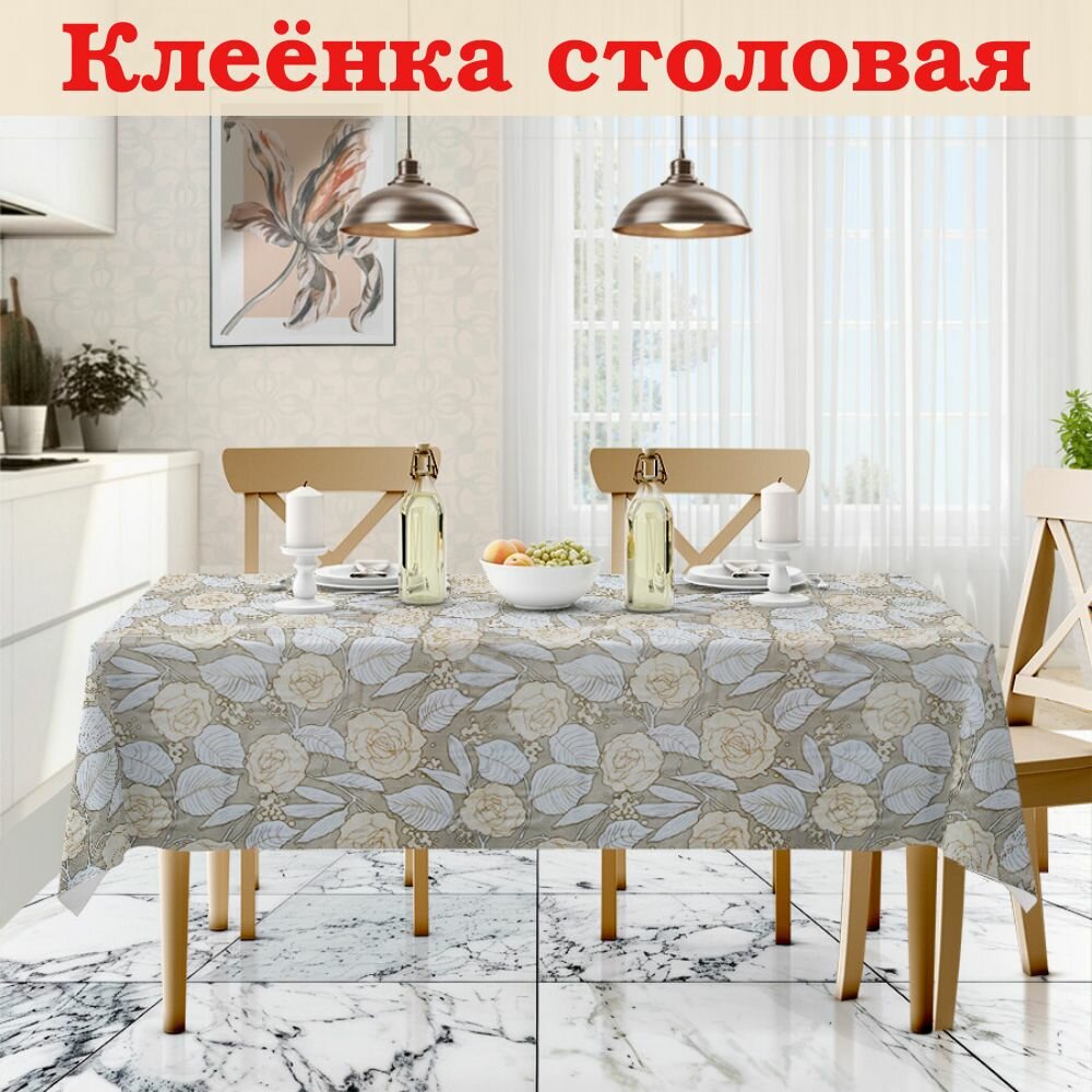 10 цен на Скатерть клеенка на стол 120х140 см Бежевые цветы арт 8029 для кухни, столовой, дачи