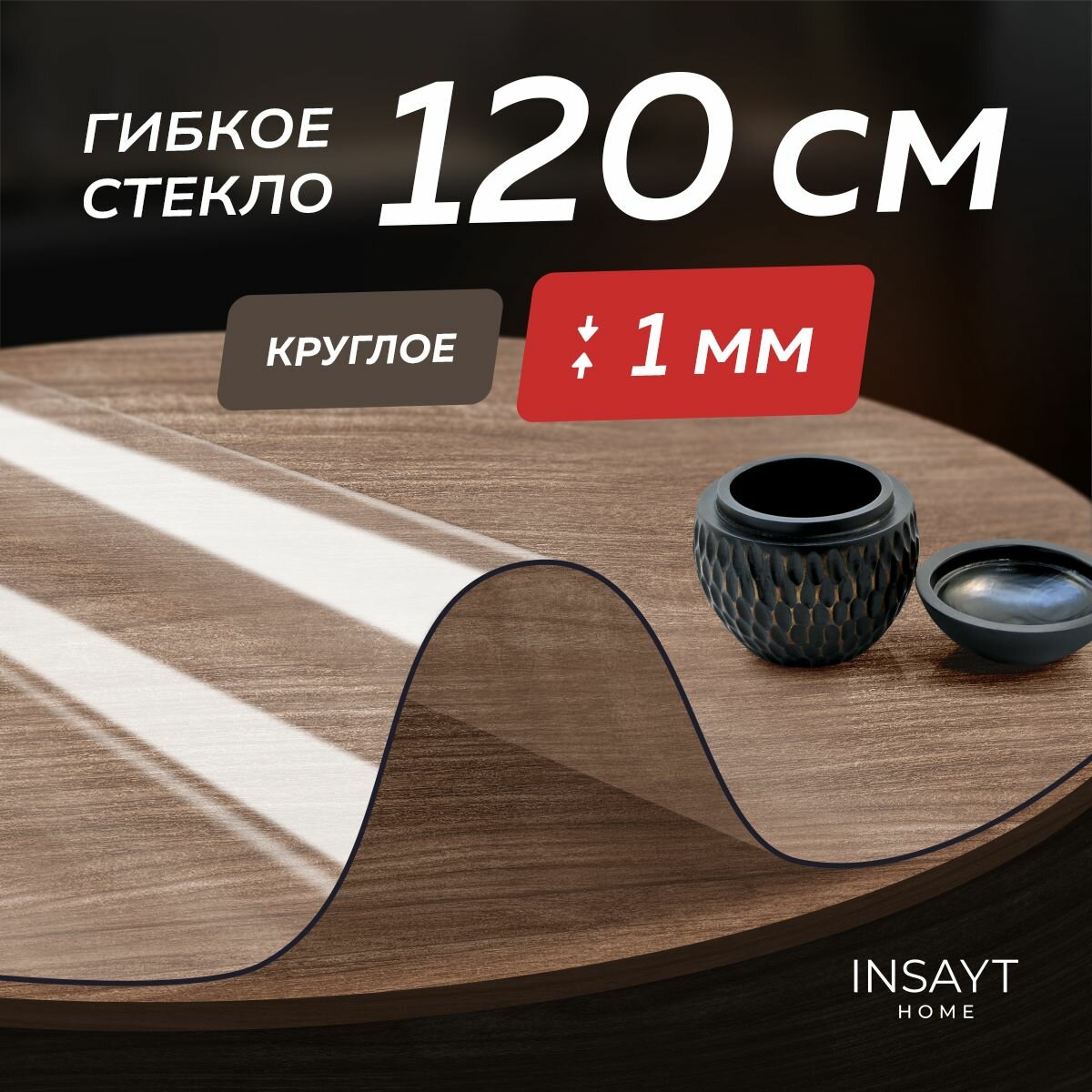 Гибкое жидкое стекло на стол круглое прозрачное 120 см, толщина 1 мм информация: