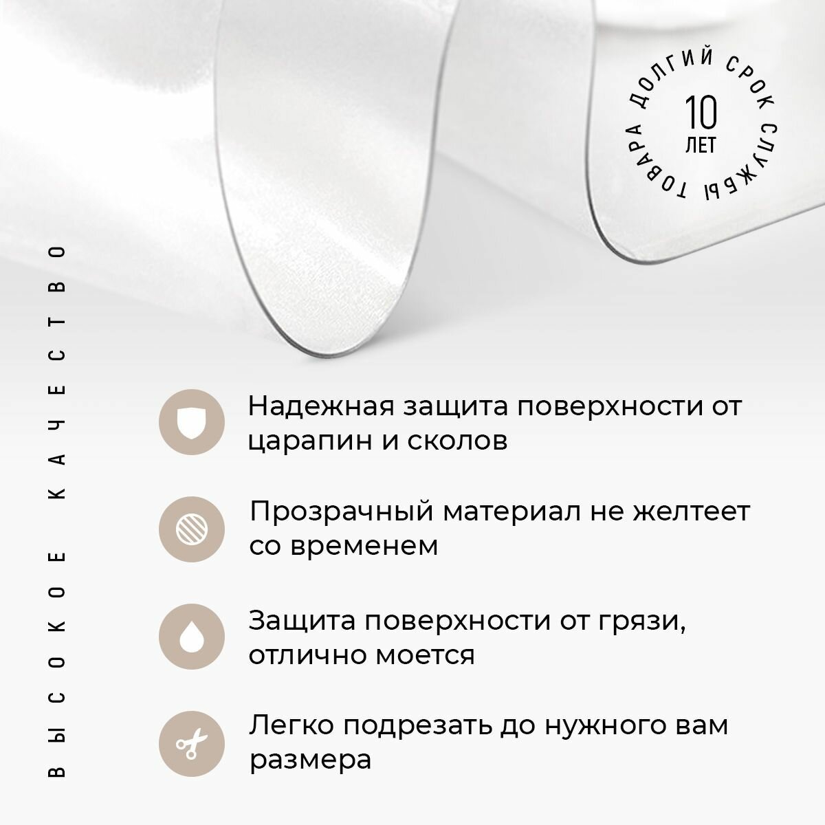 Скатерть прозрачная 140 x 190 см, толщина 0,2 мм (200 мк) / мягкое-гибкое стекло ПВХ