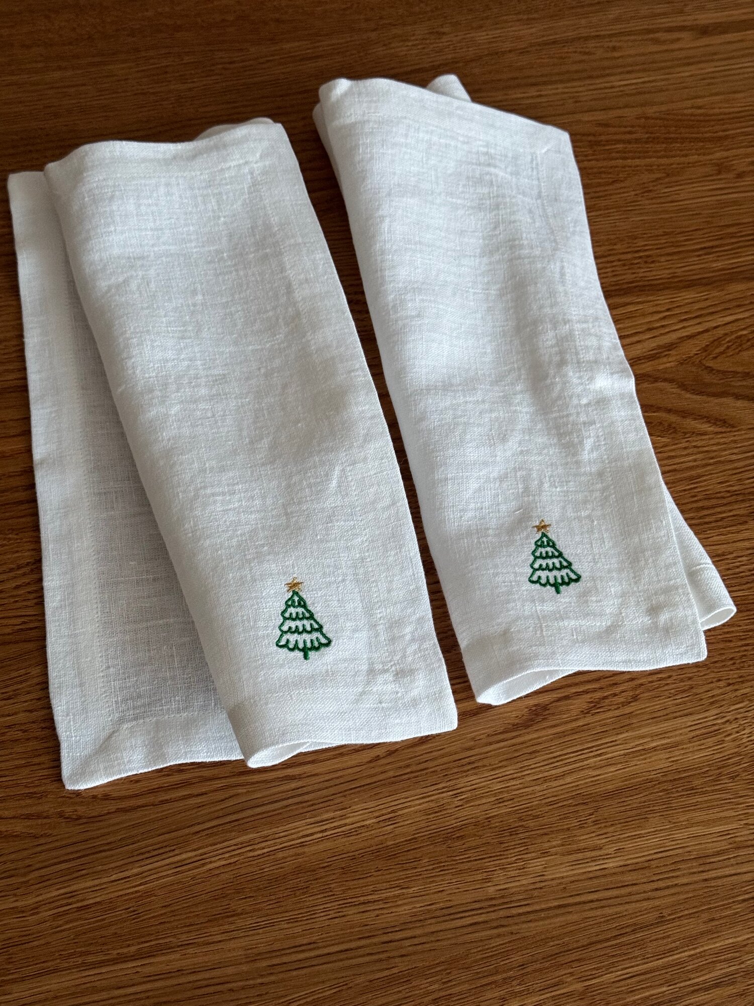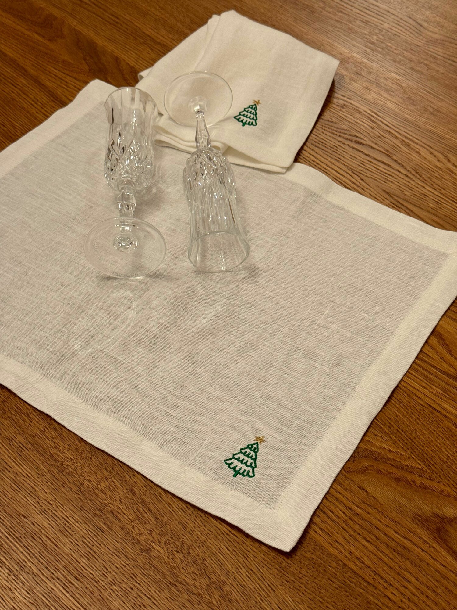 10 цен на Салфетка Новогодняя льняная с вышивкой Плейсмат лен 100% вышивка "Елка Новогодняя" Новый Год 2025