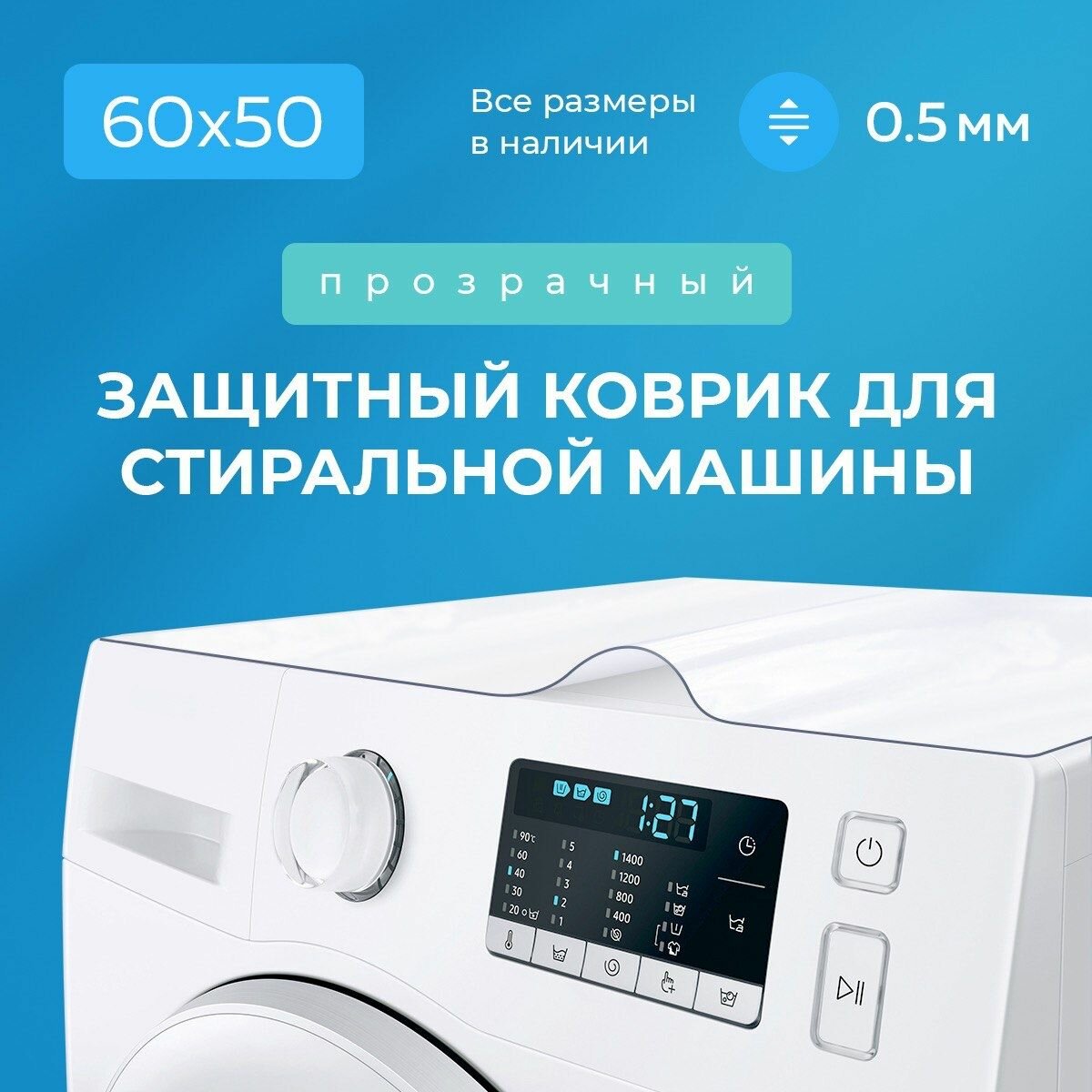 Прозрачный коврик на стиральную машинку гибкое жидкое стекло 60х55 см, 55х60 см, 0,5мм 610 ₽